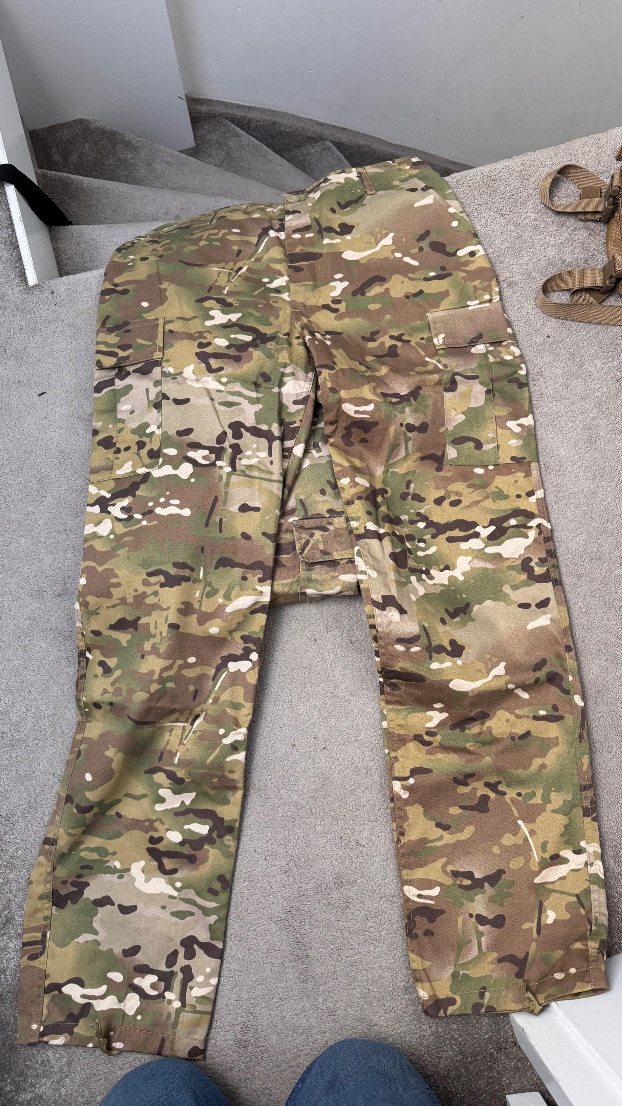 Te koop 2 broeken met multicam waarvan 1 nieuw en 1 gedragen. Maat M