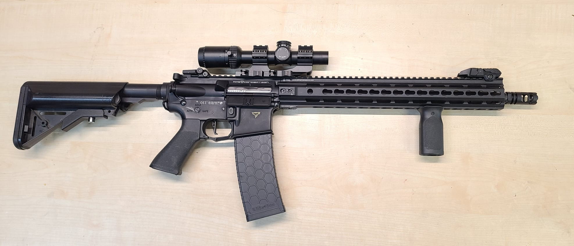 Dieses AEG M4 ist im Style von dem TTI Modell des Films John Wick 2  JW2 nachgebaute Nachbildung des AR15-Gewehrs.