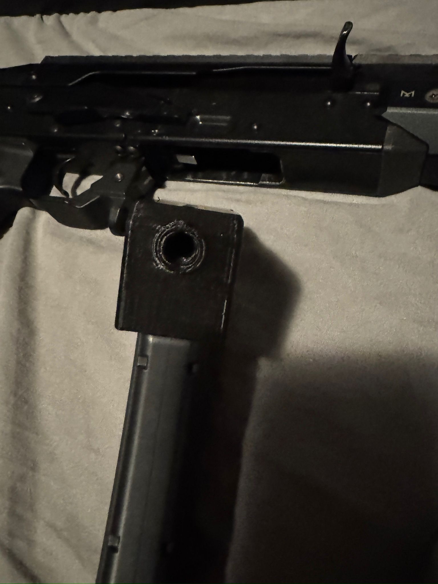 - 1 3d printed magazijn guide attachment voor het makkelijker maken van het refillen