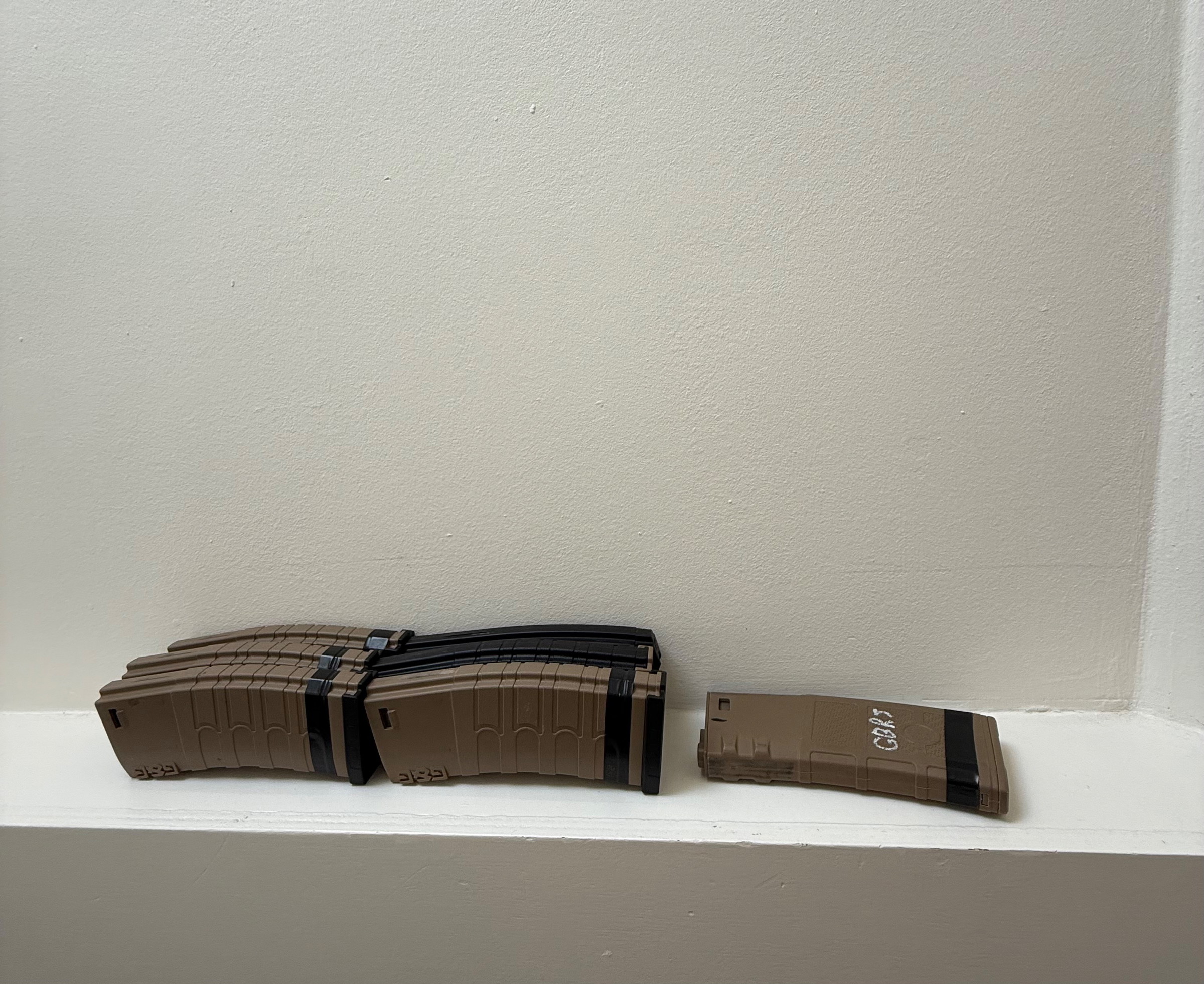 Je krijgt erbij de rifle, 7 midcap magazijnen waarvan 1 defect is, een LiPo batterij met oplader, red dot sight, laser met zaklamp, vertical grip en een rail en overige attachments zoals op de foto.
