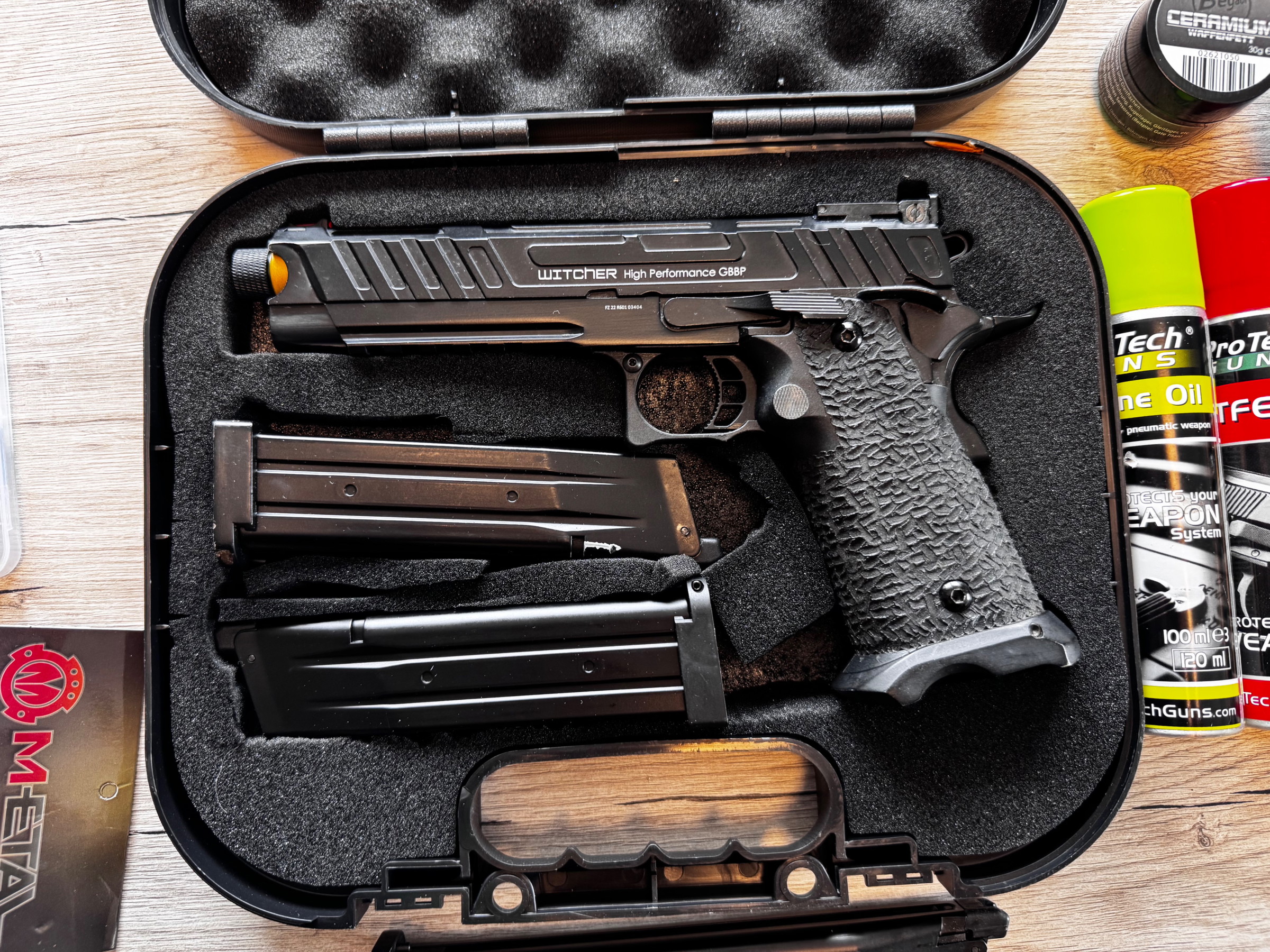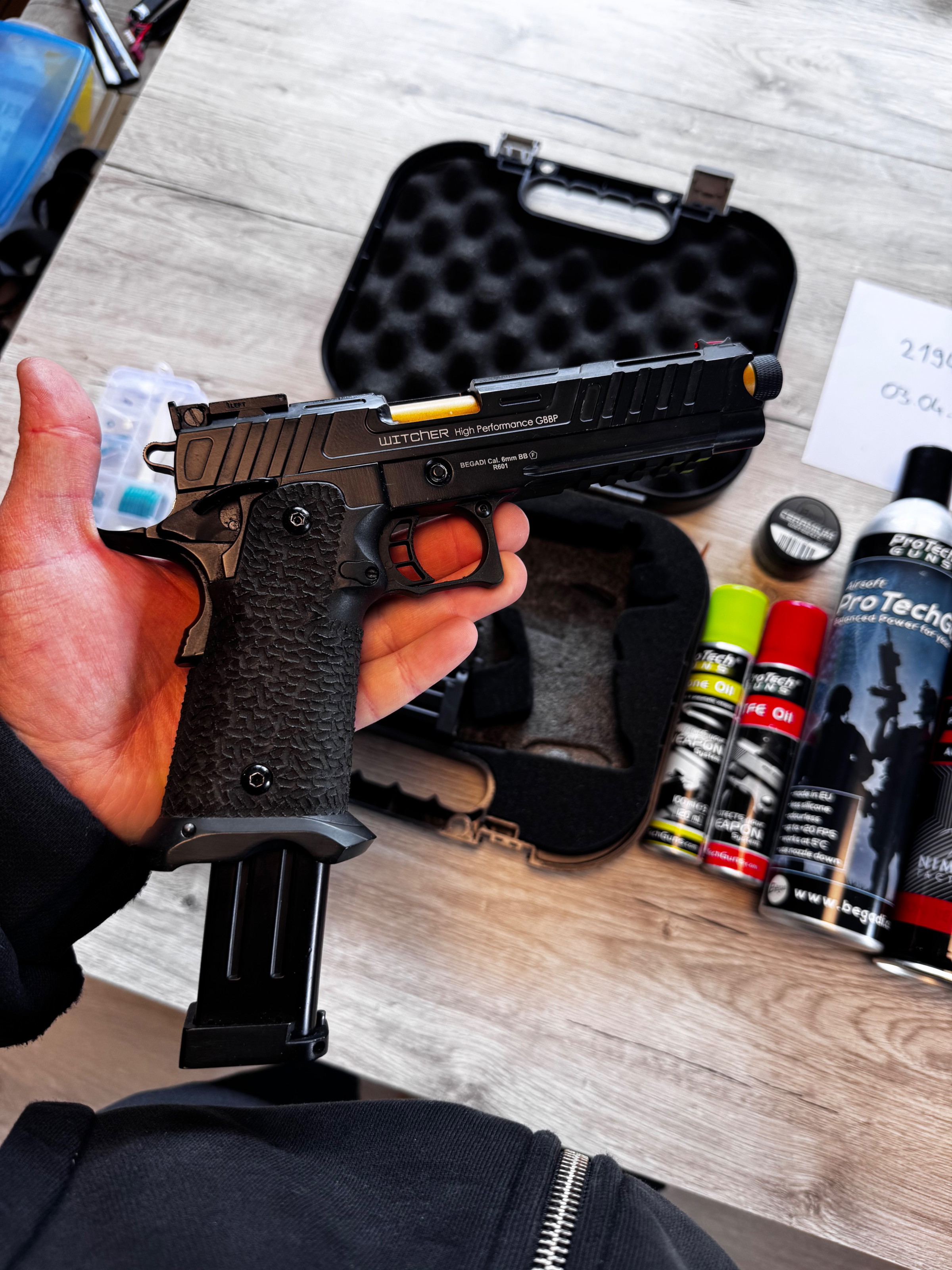 Hallo ich verkaufe hier meine Army Armament R601 Witcher GBB. Mit diversem Zubehör ( siehe Fotos ) Die Waffe wurde im Juni 2023 gekauft und dann nur ca 1 Jahr genutzt. Da ich Mitte 2024 mit Motorradfahren angefangen habe. Und seit dem liegt sie Sauber verstaut im Keller.