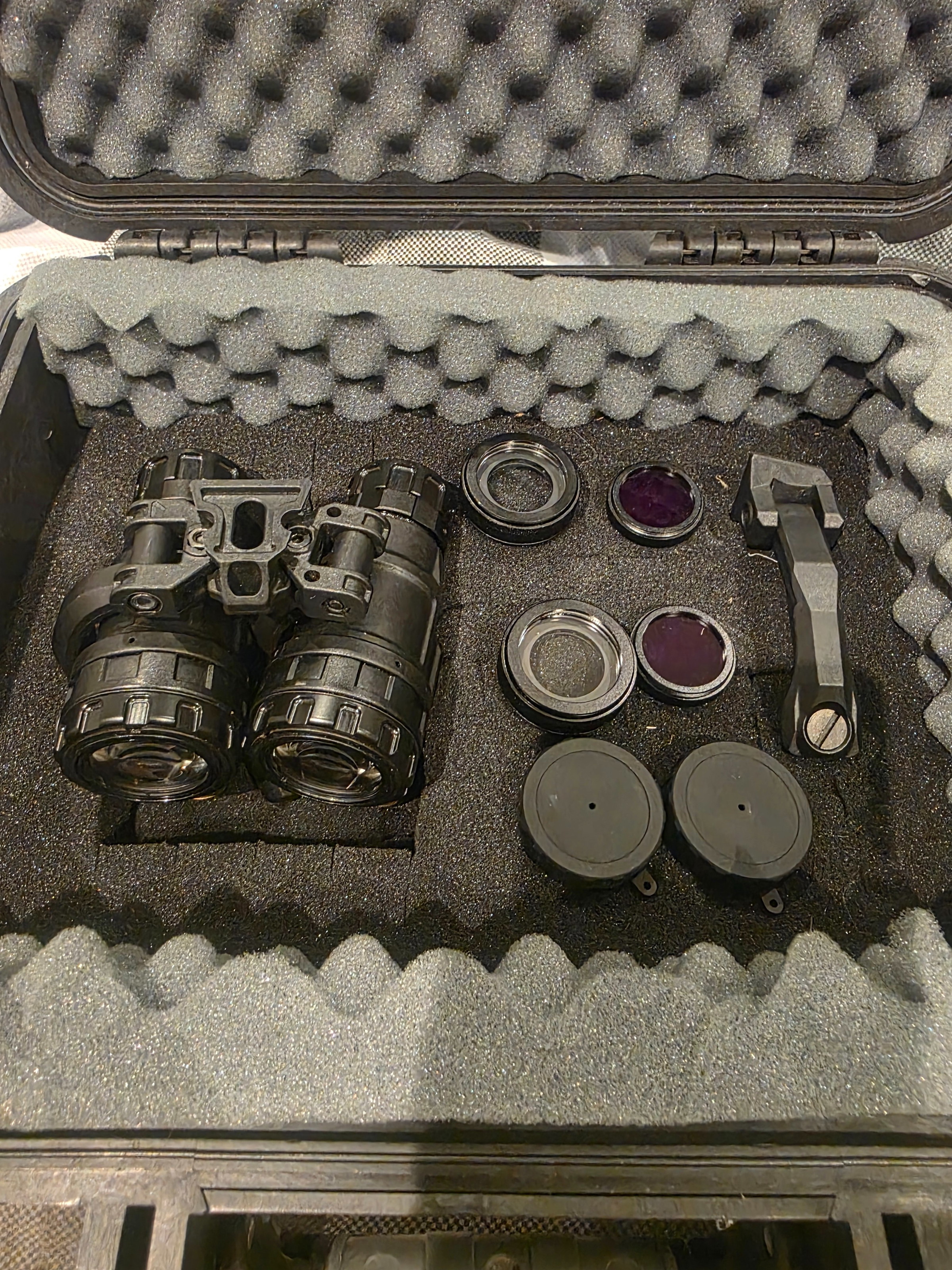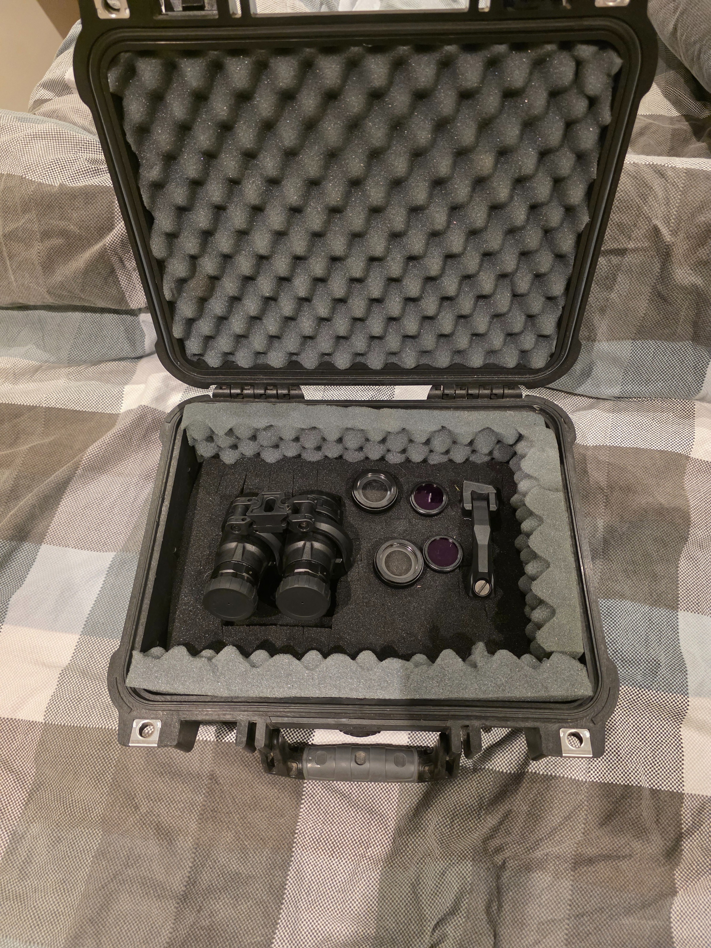 Alles op de foto’s zit erbij dus de unit, twee iris’en, twee kleurfilters ,j arm,en de pelicase 1400