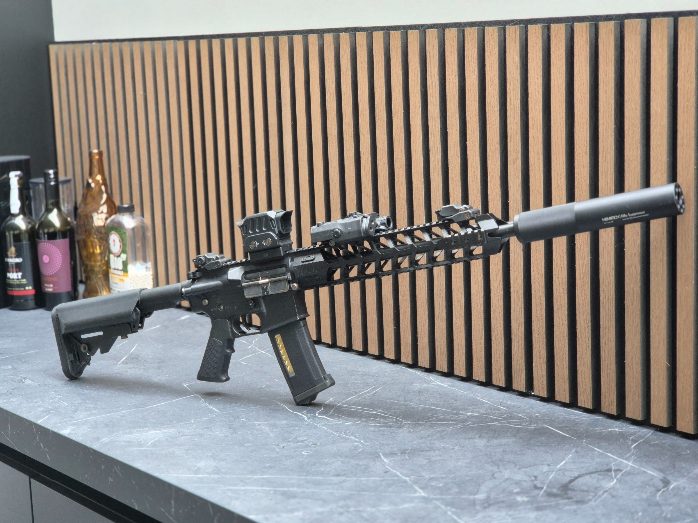 Zeer nette M4 Colt Airline. De M4 werkt allemaal netjes naar behoren en schiet fantastisch. De replica komt met: