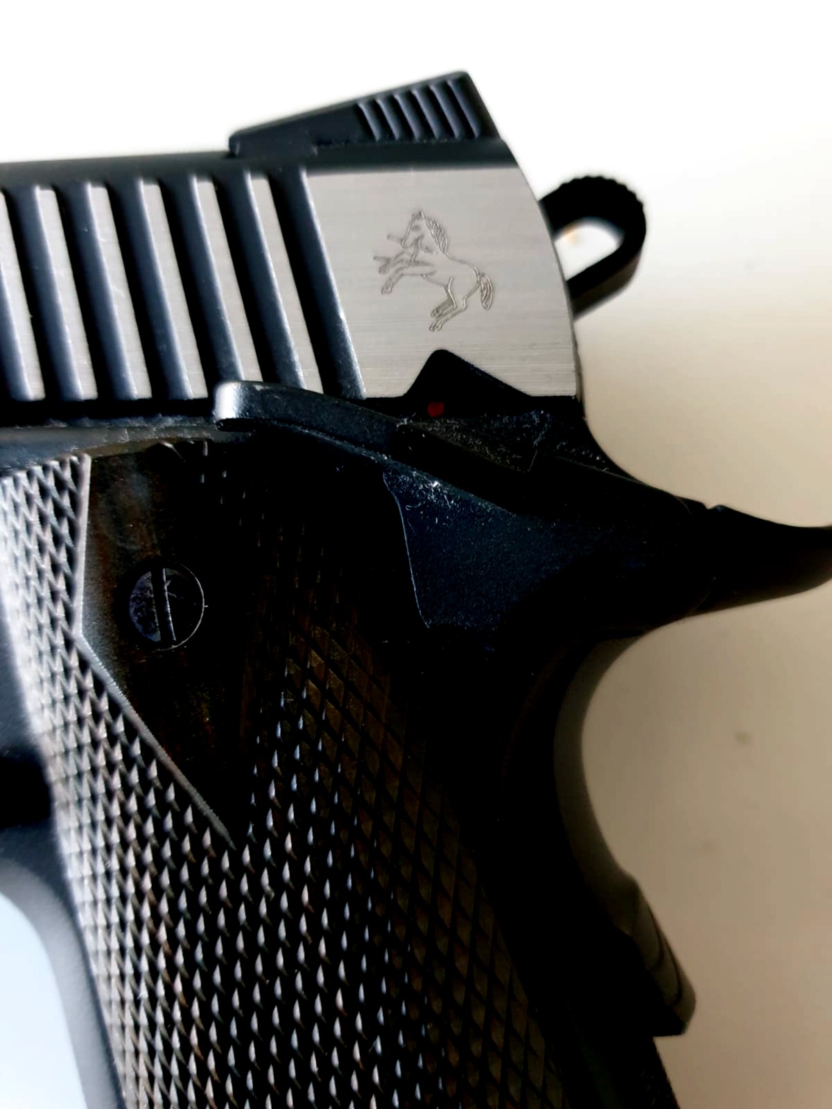 - Deze officiële Colt-replica is gebaseerd op het meest recente Rail Gun model uit de 1911-familie. Je krijgt moderne upgrades zoals een skeletonized trekker, gevechtsrichtmiddelen en een commander-style hamer. De Picatinny montagerail onder de loop maakt het mogelijk om een lamp of laser te monteren – ideaal voor tactische scenario’s. Het is een prachtig eerbetoon aan John Browning's tijdloze ontwerp.