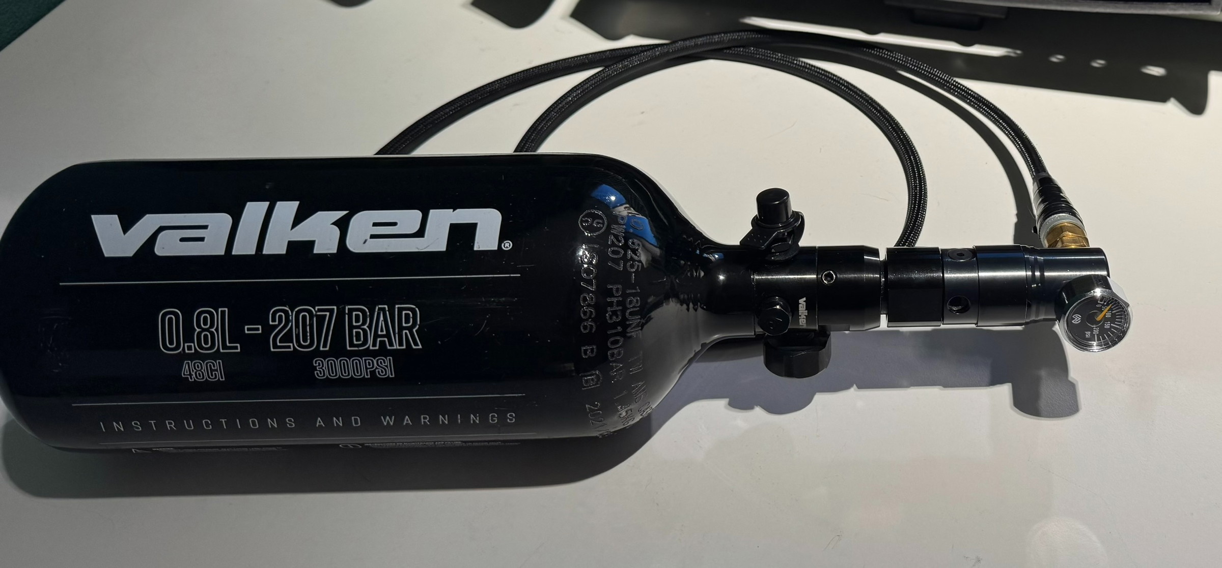 Het wapen is een omgebouwde AEG naar HPA en hier mee zit er een Wolverine FCU waarmee je de lucht en FPS snelheid instel,
