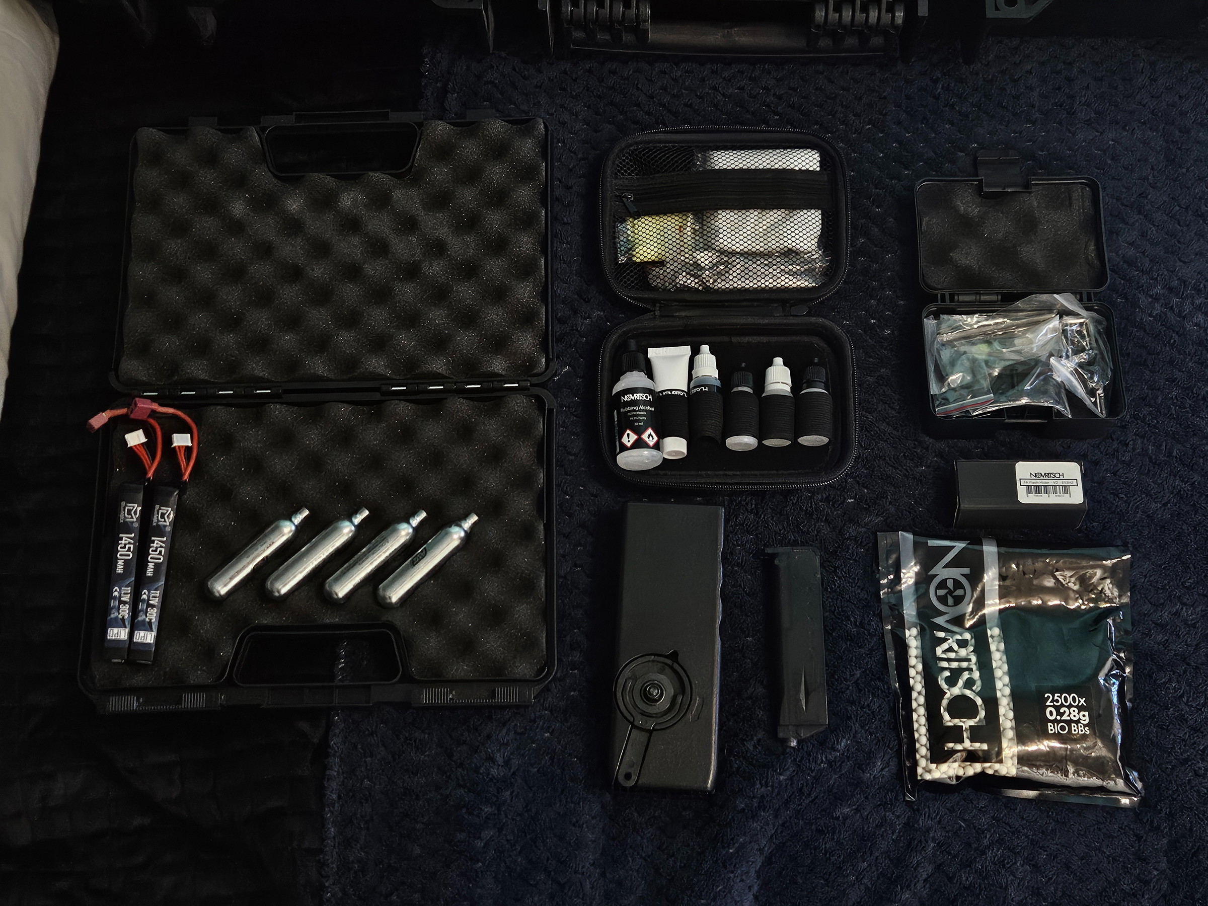 Ik bied hierbij een zeer complete en bijna nieuwe airsoft set aan, ideaal voor zowel beginners als ervaren spelers.