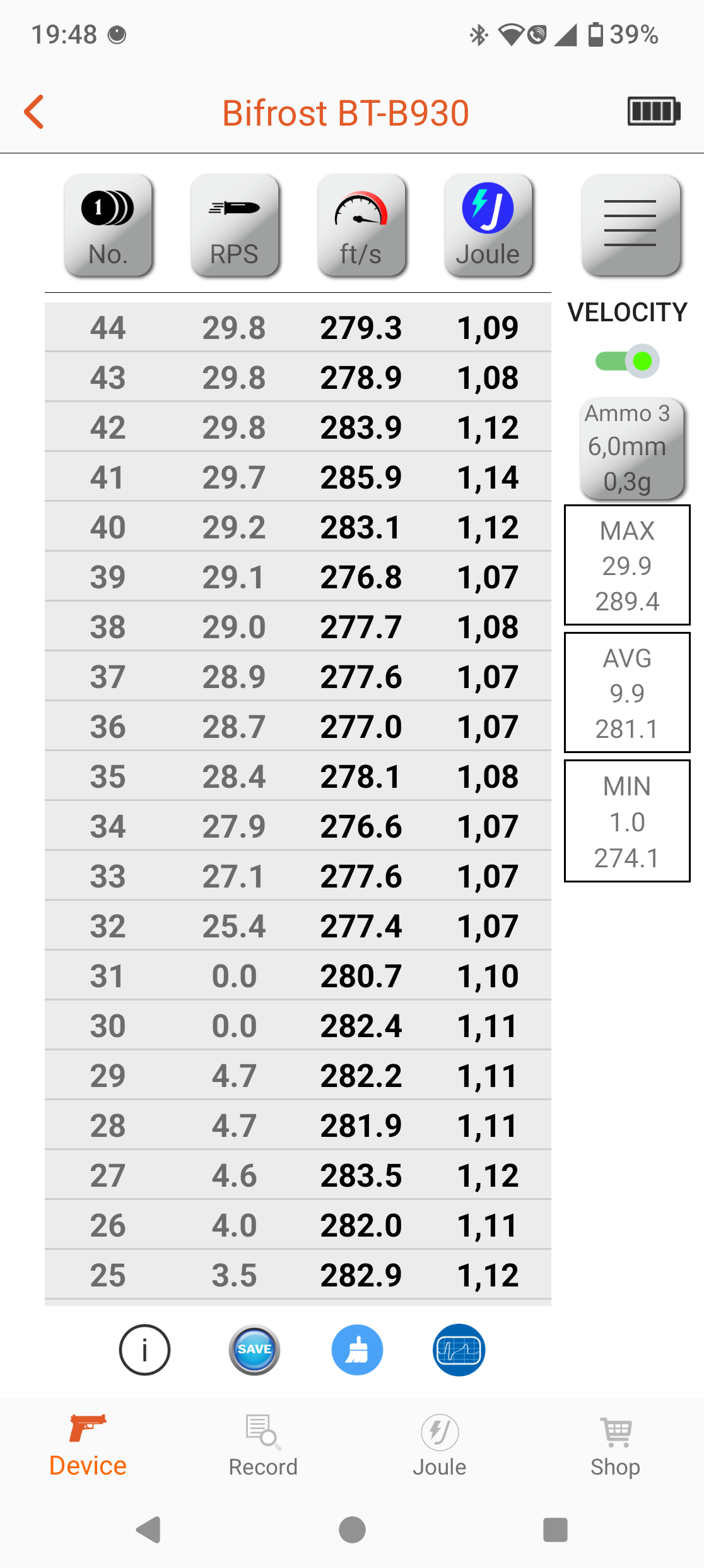De replica haalt op een 25c 1500Mah 11.1v lipo batterij een rof van 29 rps en 1.1J zonder hop met .30 BLS bbs.