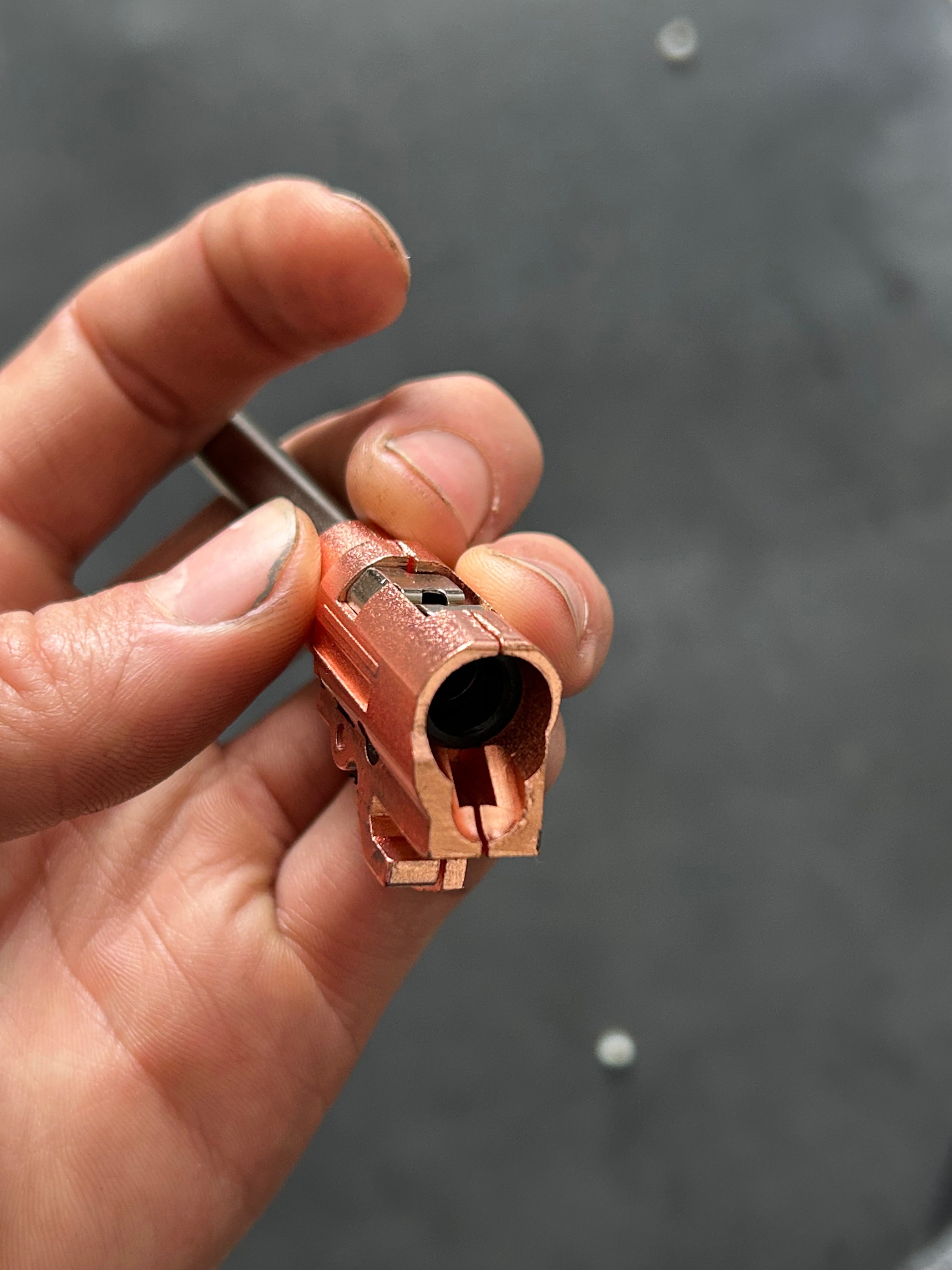 Wegens stopzetting hobby verkoop ik mijn custom tokyo marui hij is volledig geupgrade, hieronder een lijst met de stukken die er in zitten, word verkocht met 3 gbb magazijnen adapter en 2 mid caps.