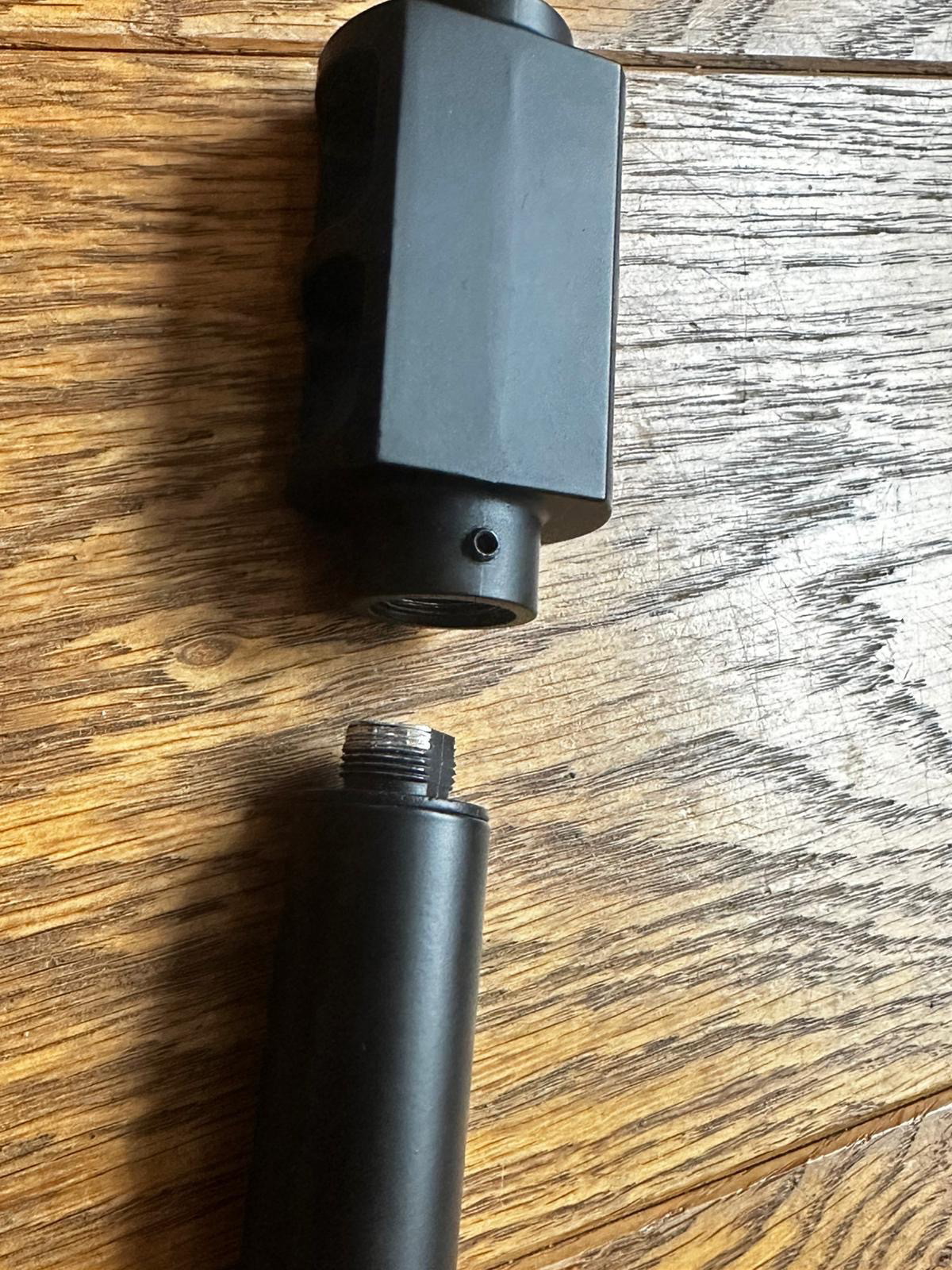Komt wel nog met vuurmond, maar schroefdraad is een beetje beschadigd vooraan. Kan wel nog gebruikt worden