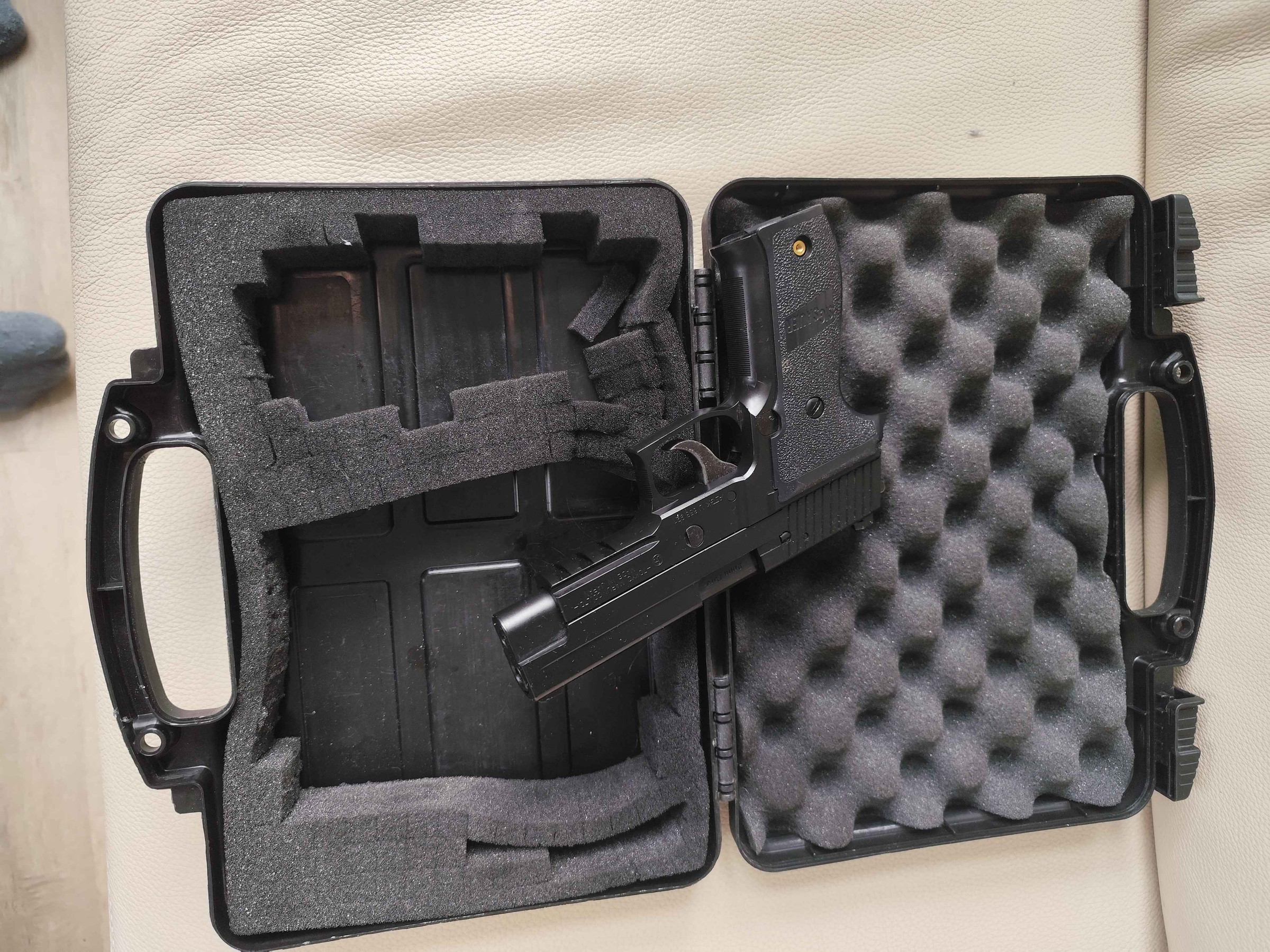 De case krijg je er gratis bij. Ik heb nog magazijnen liggen, die kunnen voor een meerprijs ook mee.