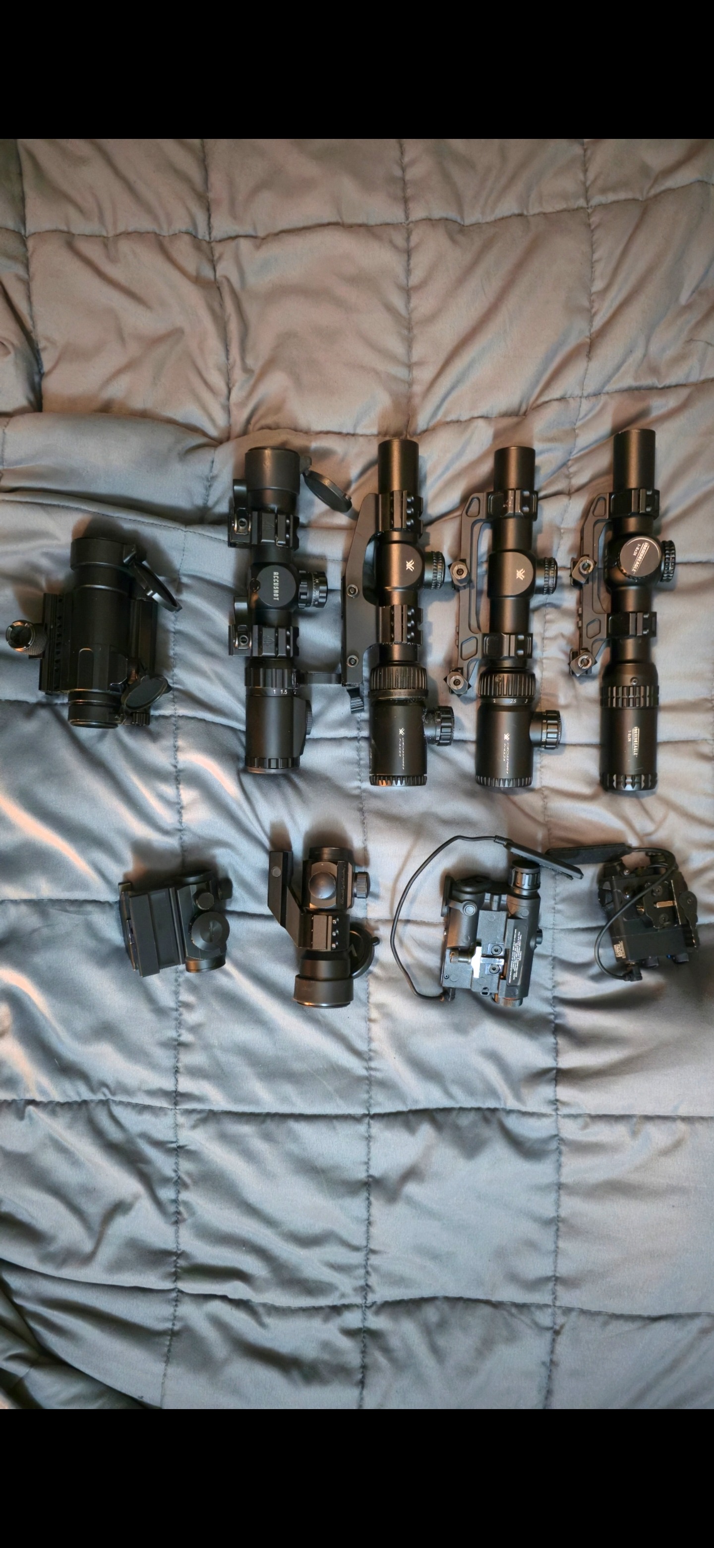 Aangeboden, diverse optics. Ze komen zoals je ze op de foto ziet. Alle optics werken naar behoren.