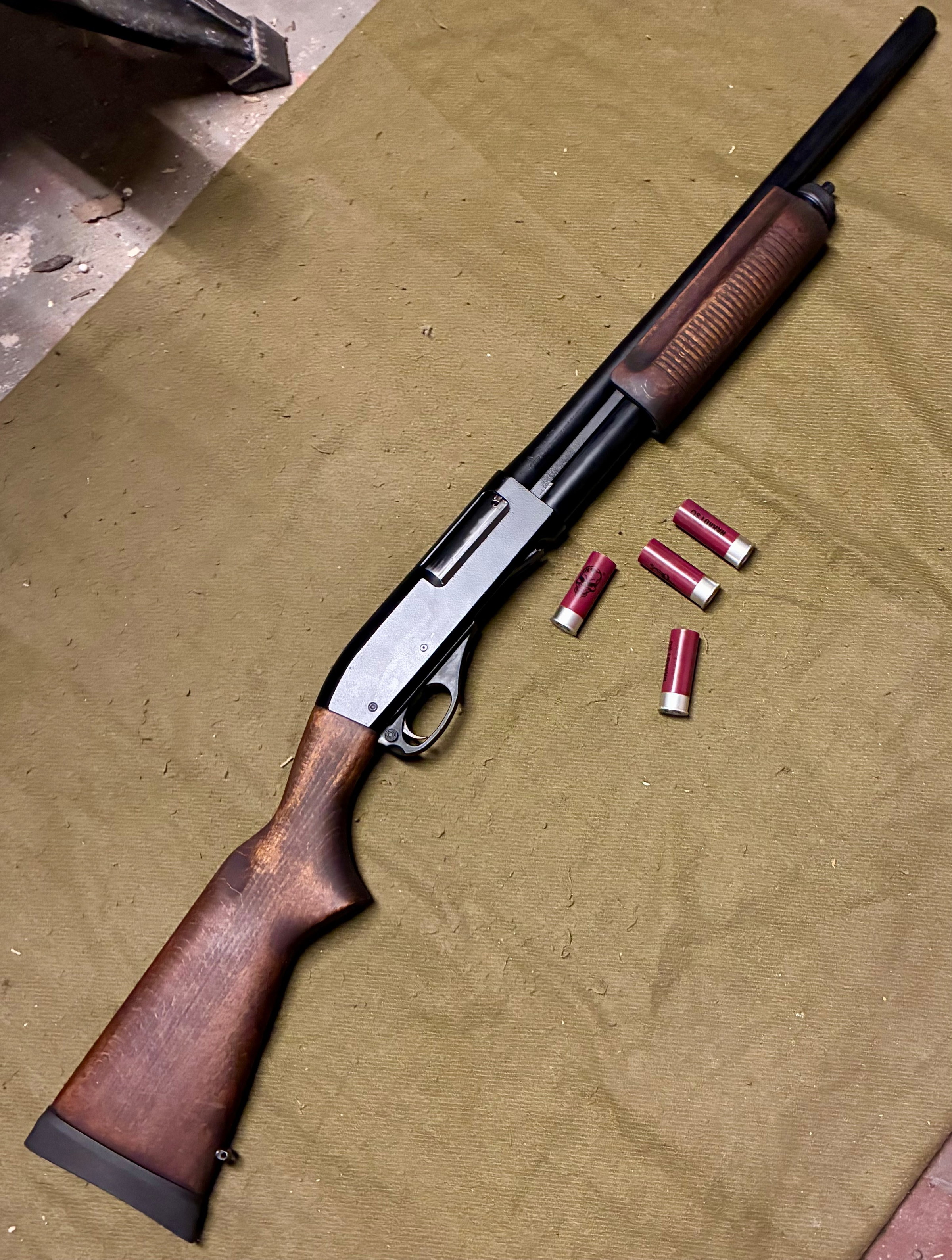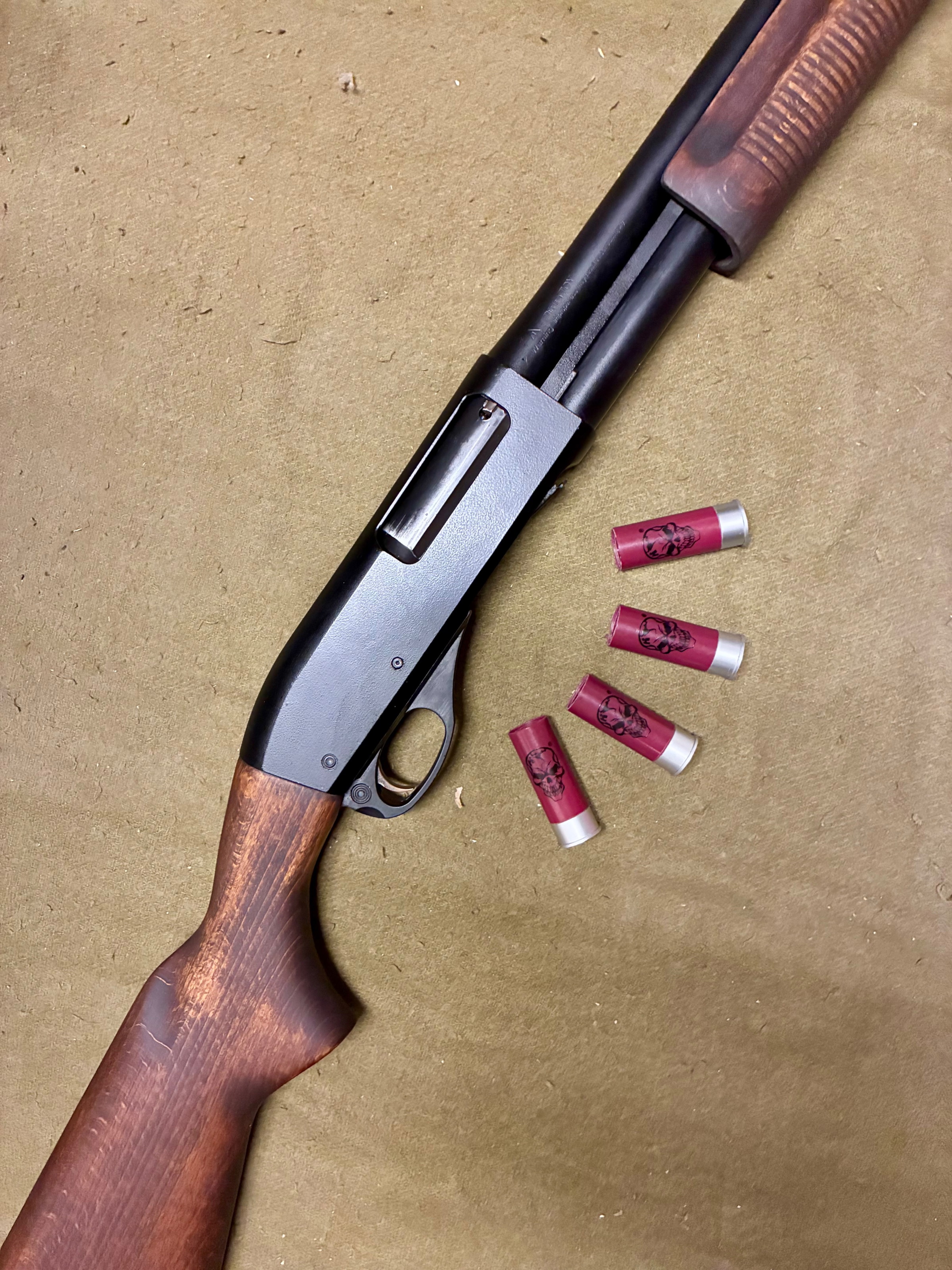 Nu komt het bijzondere: de shotgun is aangepast om te werken met de CAM870 shells van APS. Hierbij gaat CO₂ in de shells en passen er 10-12 BB’s per shell in. De inner barrel is verwijderd, waardoor het resultaat — net als bij APS — veel realistischer is en meer lijkt op een echte shotgun. De bolt is ook aangepast om de shells probleemloos te activeren en uit te werpen. Alles werkt naar behoren.
