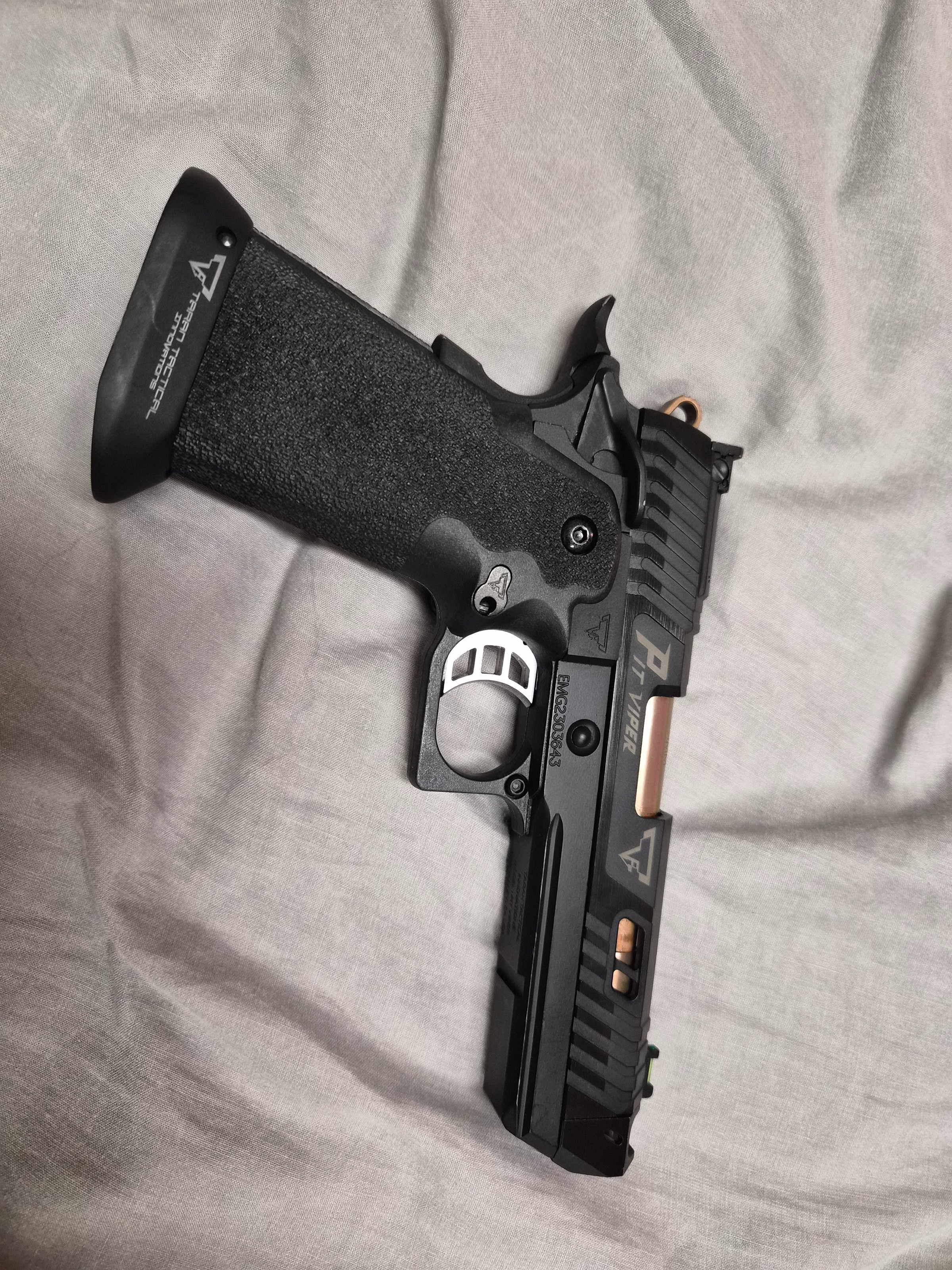 Hierbij verkoop ik de prachtige en een van mijn lieveling wapen de John Wick Chapter 4, EMG TTI 2011 Pit Viper. wapen komt met 1 extra magazijn dus totaal 2 magazijnen. (lekvrij)