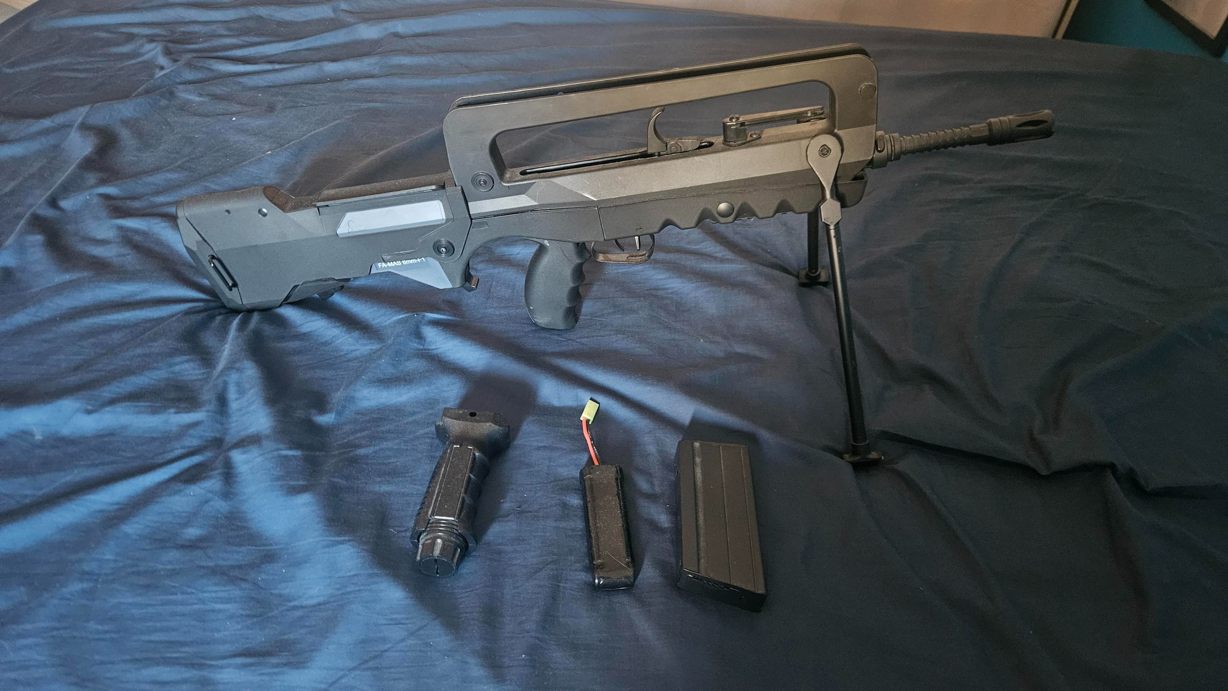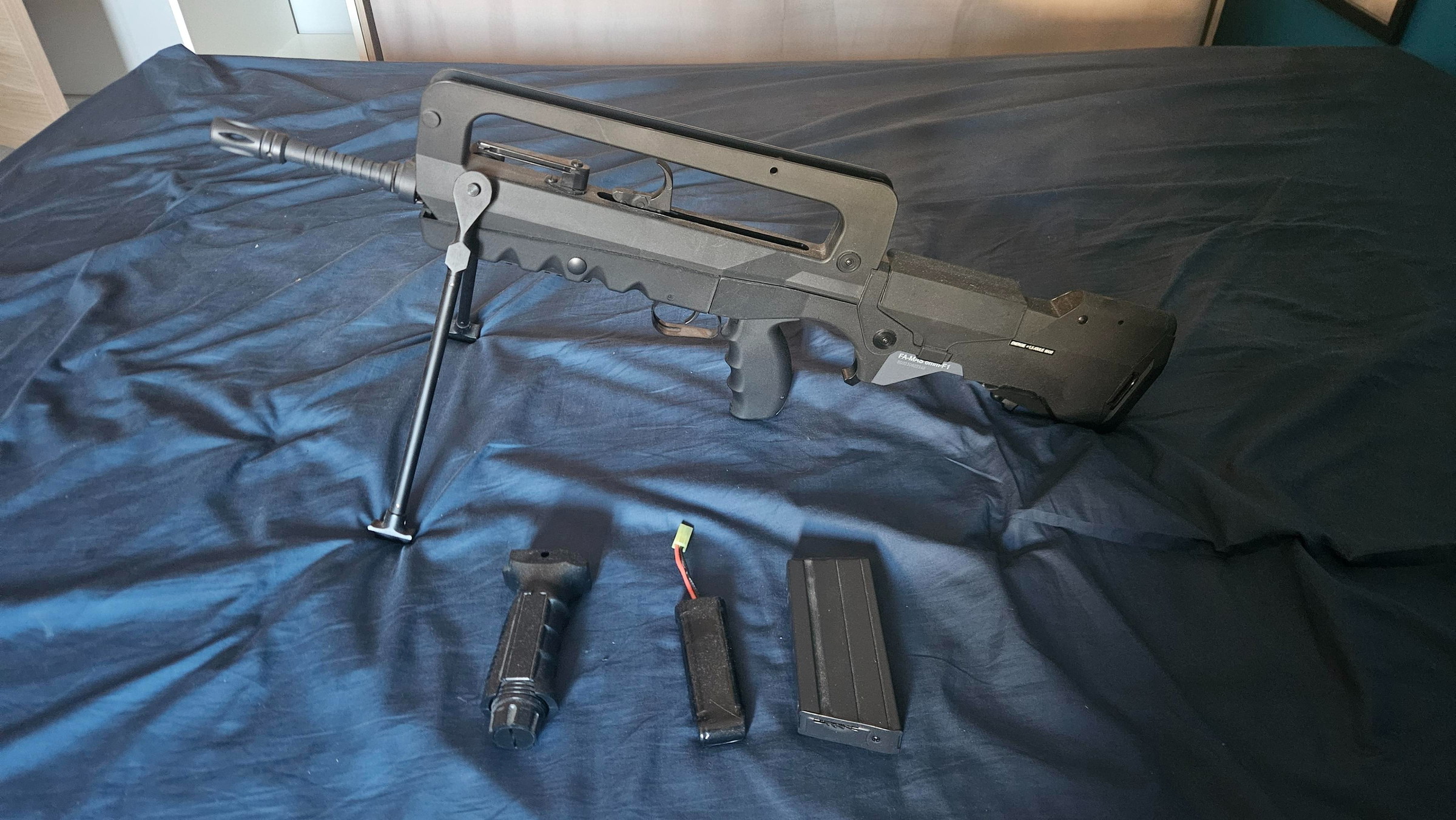 Bonjour, je vends ma réplique du FAMAS de chez cybergun. Je l'ai utilisé 3 fois sur des petites sessions (15-20 minutes). Airsoft neuf jamais tombé. Je vends le chargeur la batterie et la poignée verticale avec.