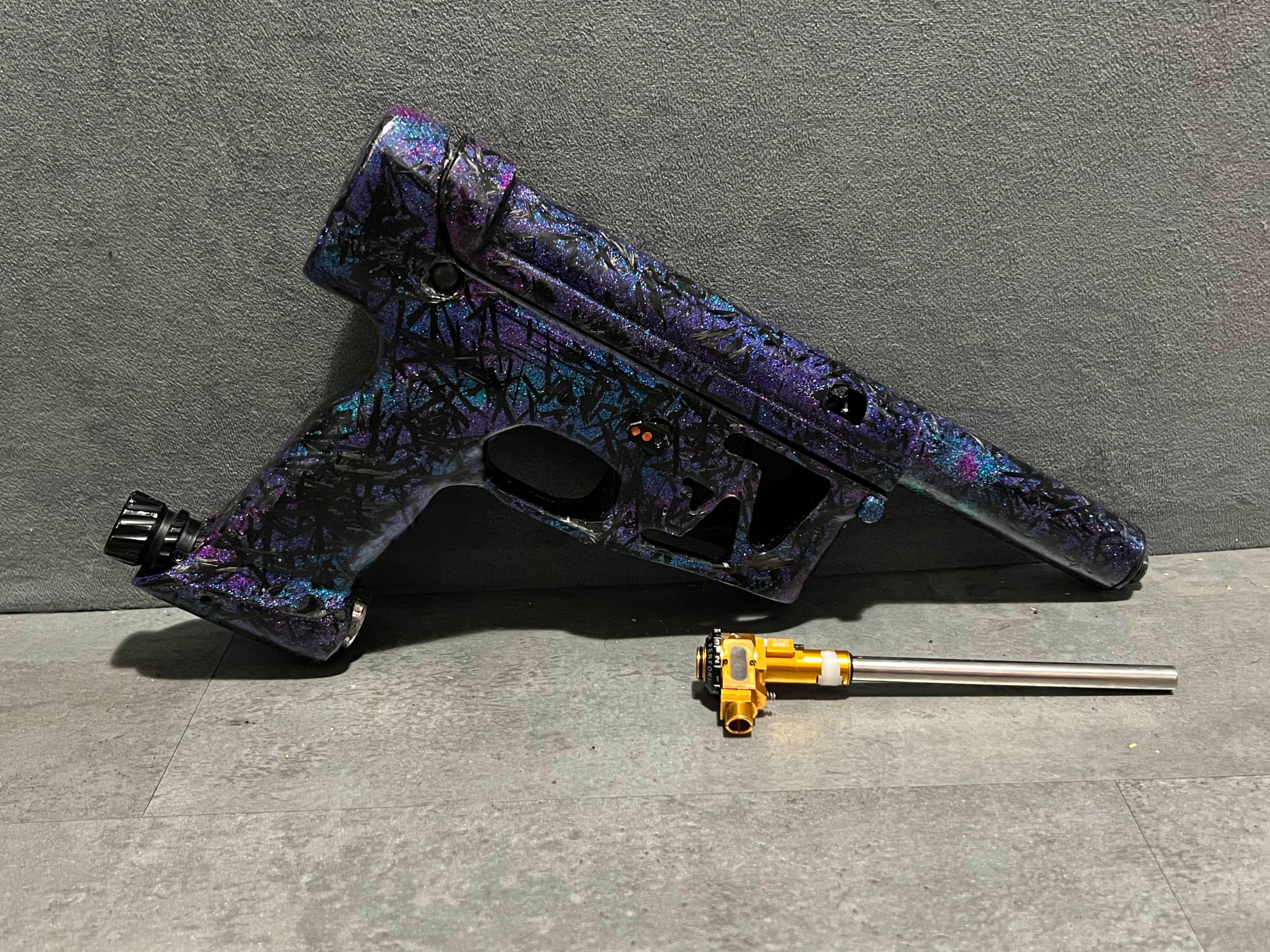 De verf is een combinatie van koolstof met een laag gemetalliseerde epoxy in blauw/paars/groen.