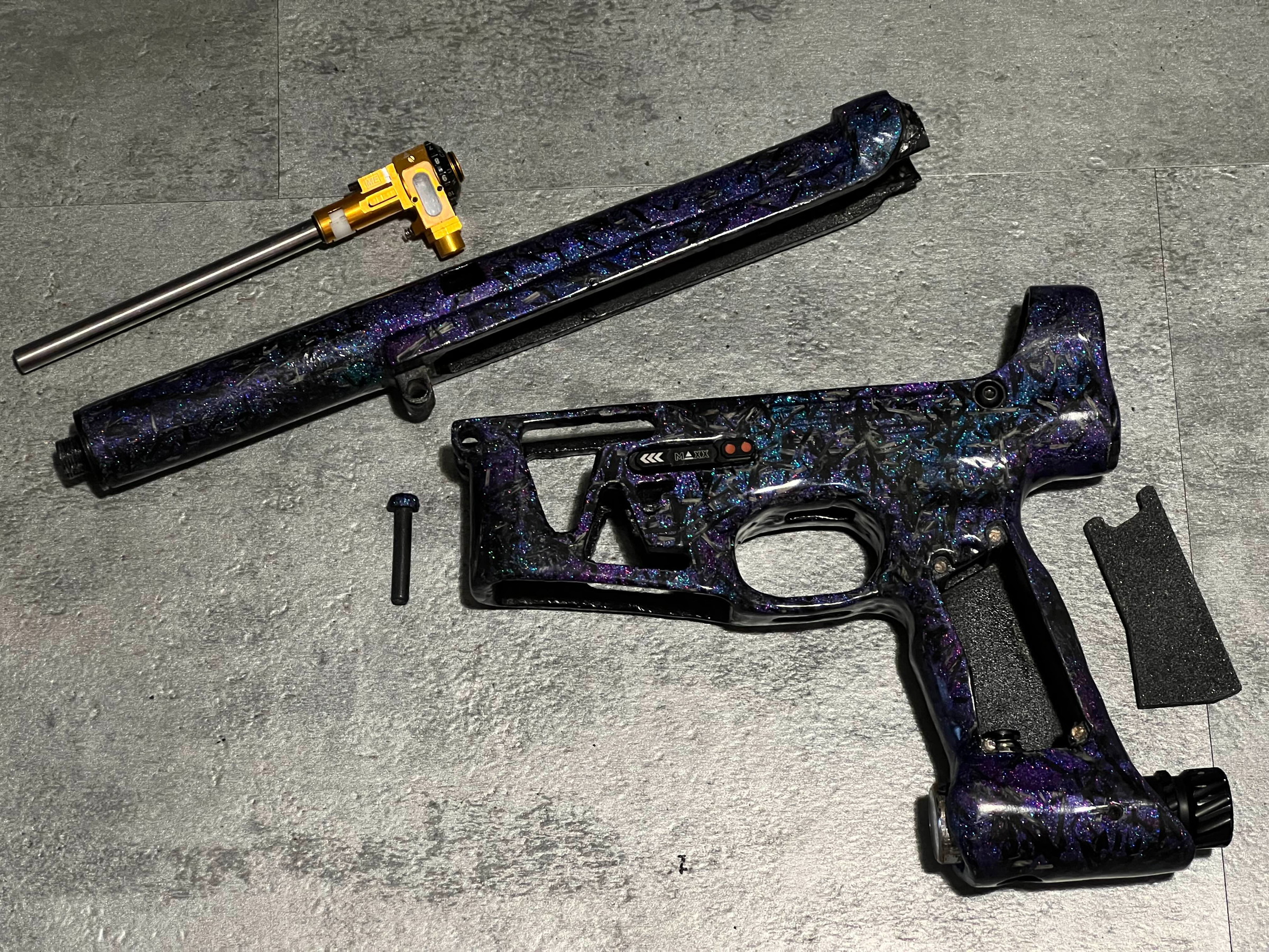 The paint is a carbon composite with a blue/purple/green metallic epoxy coating.