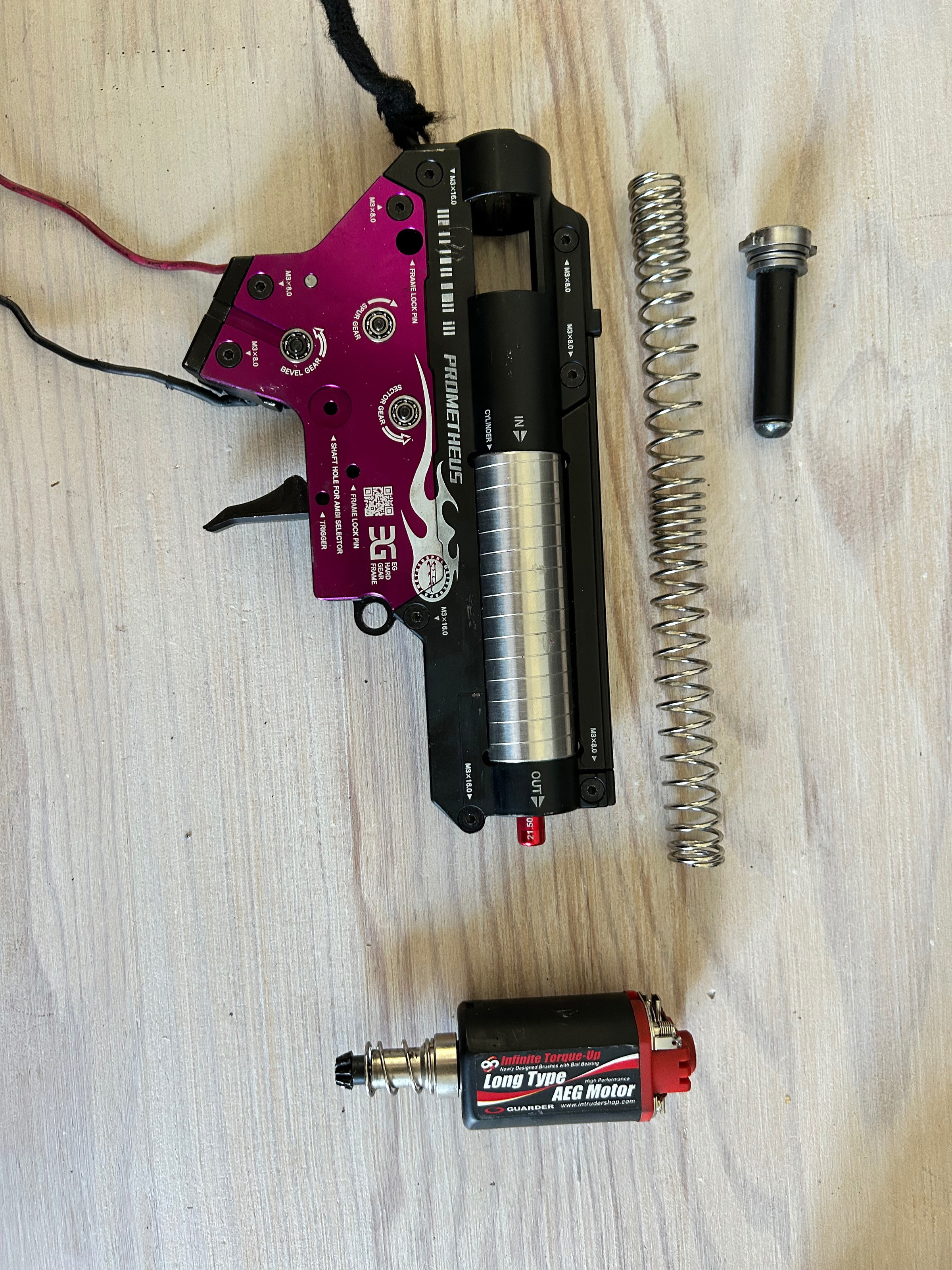 I’m selling a fully upgraded AEG V2 gearbox + motor.