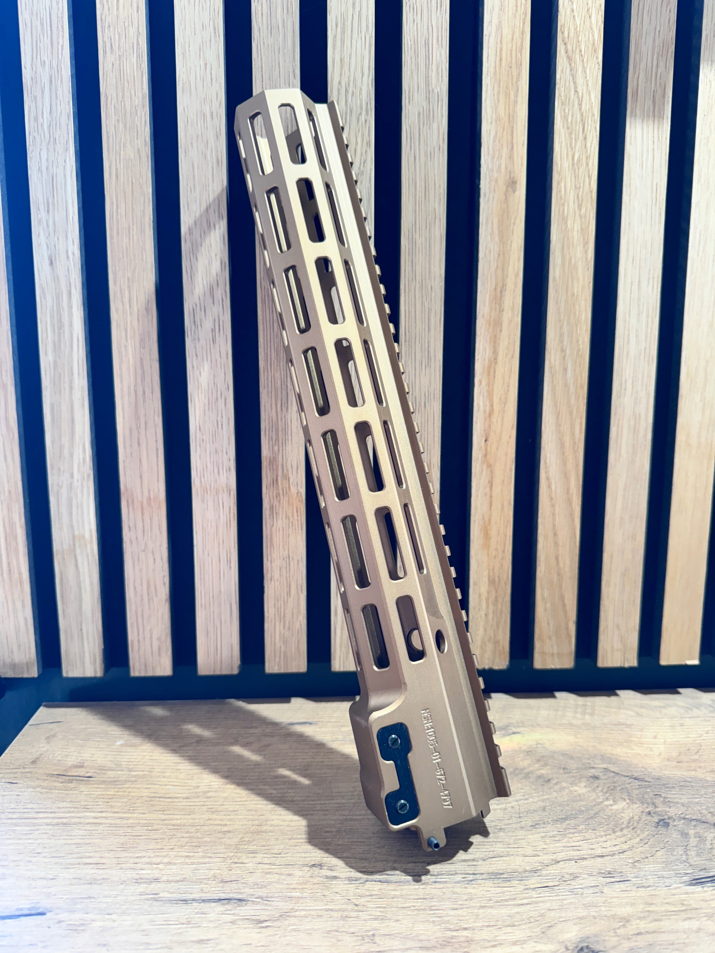 Een splinternieuwe replica van de Geissele SLR handguard in 13,5 inch in de kleur Tan.
