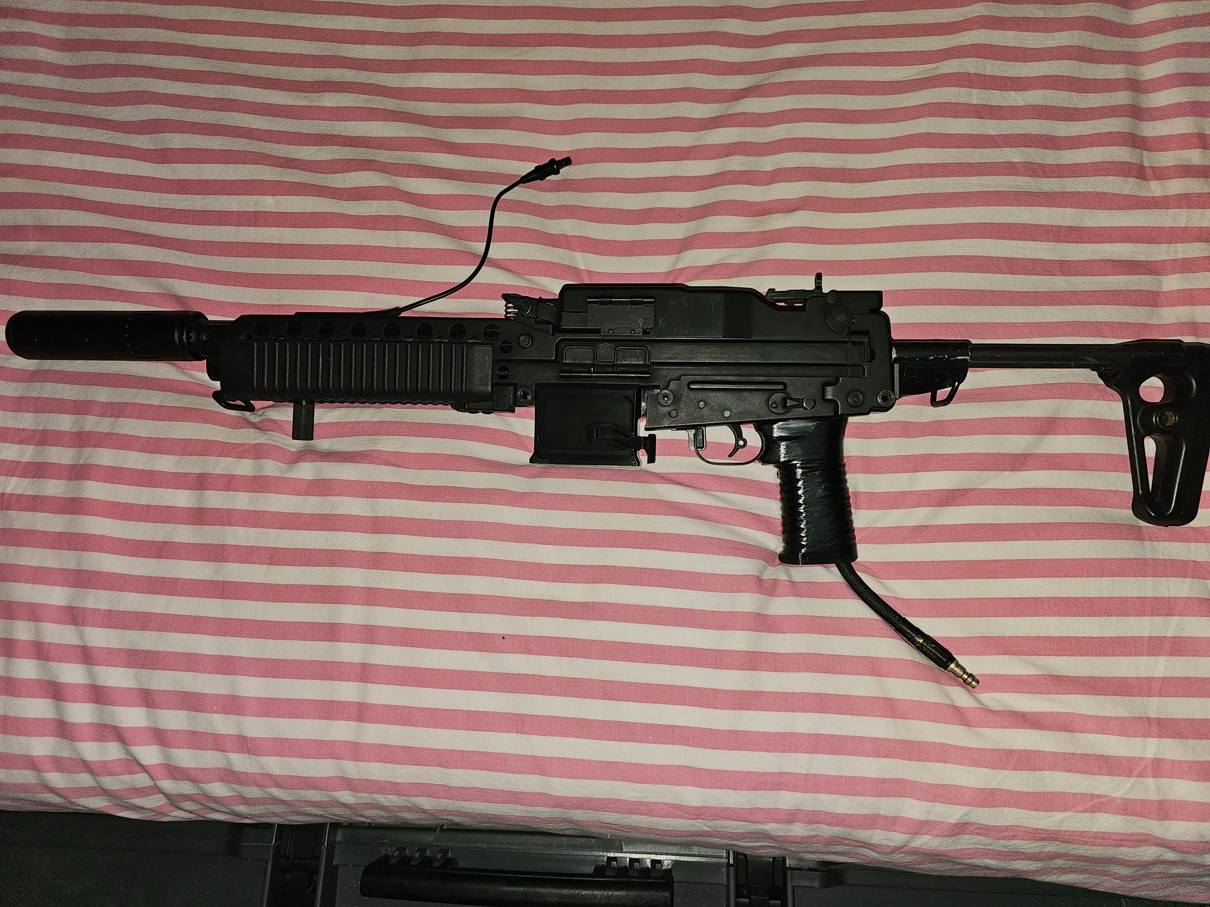 Een custom build van scum customs in america van een g&p stoner 63 omgebouwd naar naar m4 mags. Deze heeft een polestar 1 engine en een maxx hop up en angel custom innerbarrel. Deze gekocht voor er een build van te maken maar hpa is niet echt men ding. Deze schiet voor het moment alleen maar full auto wegens dat er geen selectorplate meer inzit maar bullcraft industries maakt er nog stukken van. Heeft overlaatst in airsoftshop poperingen een onderhoud gehad waar die perfect werkte maar thuis met mijn tank en reg is hij redelijk inconsistent. Zelf weet ik er te weinig van om dit op te lossen. Goed bod kan overwogen worden of ruil tegen bv tm ngrs replica met mosfet.