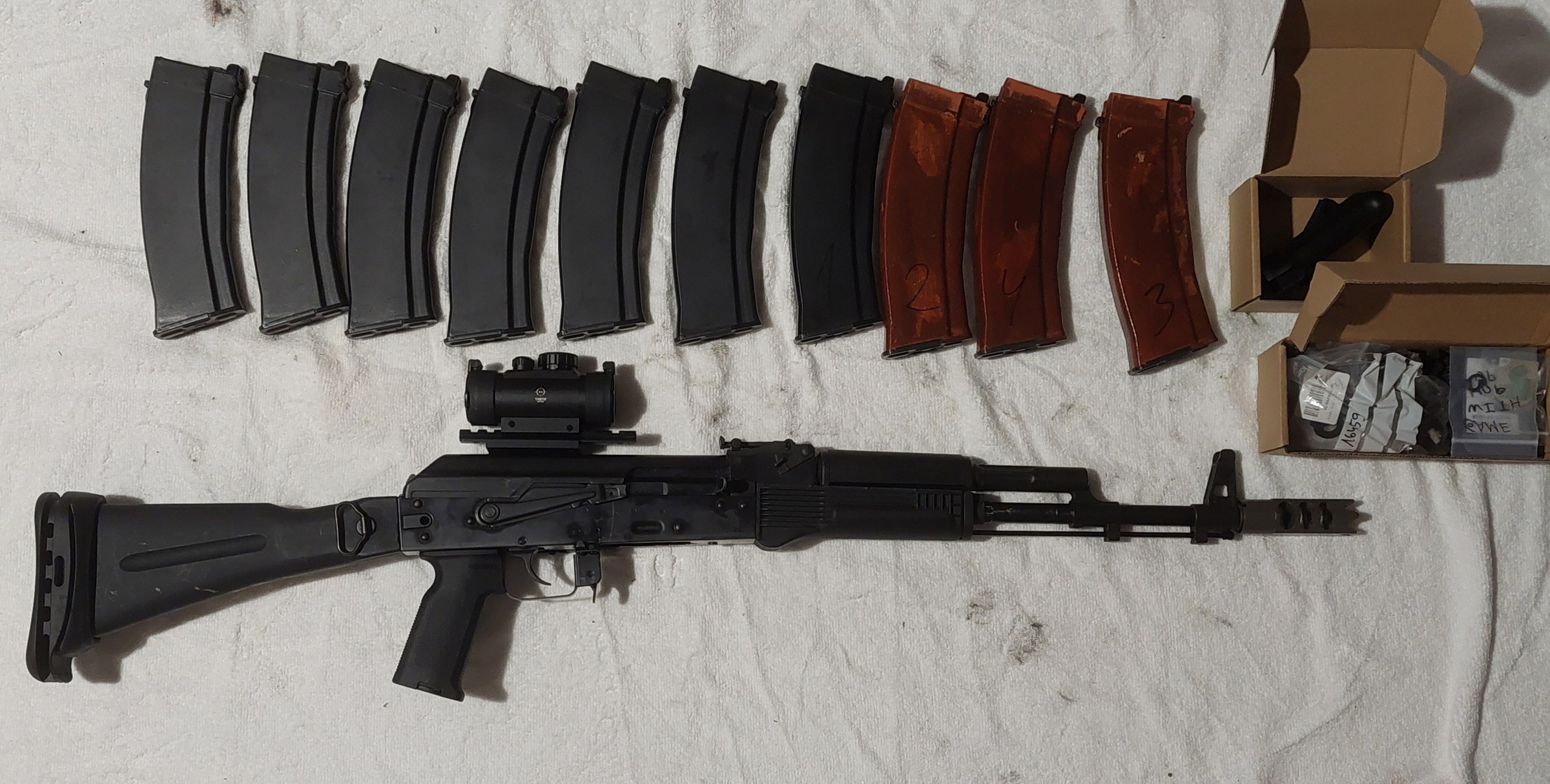GHK AK74M with red dot, recoil buttpad, Magpul pistol grip and muzzle brake