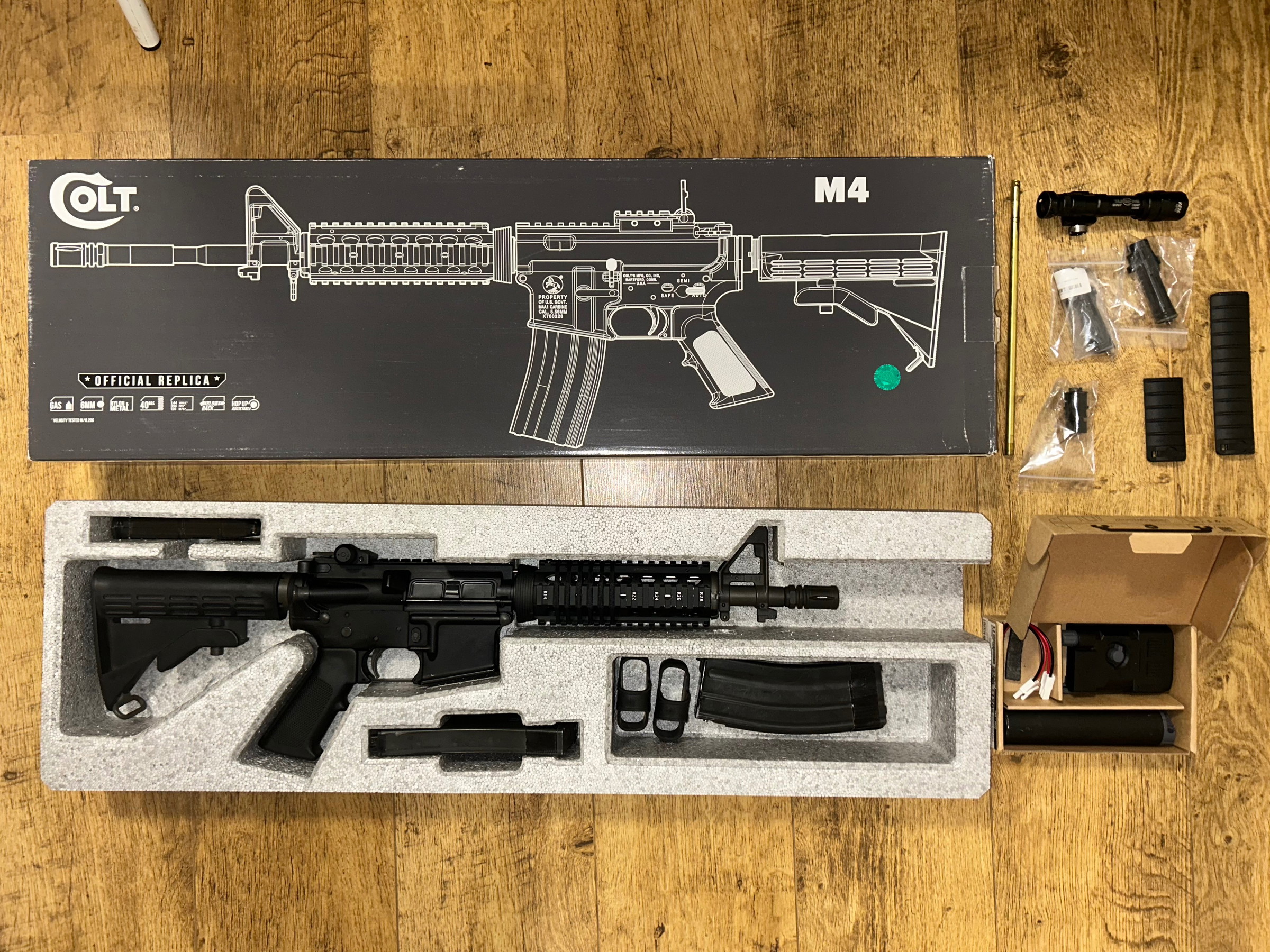 De M4 bevat minimale gebruikssporen. Hij is na elke skirm schoongeveegd en opnieuw ingevet zodat alles soepel blijft lopen. Hij heeft me nooit in de steek gelaten.