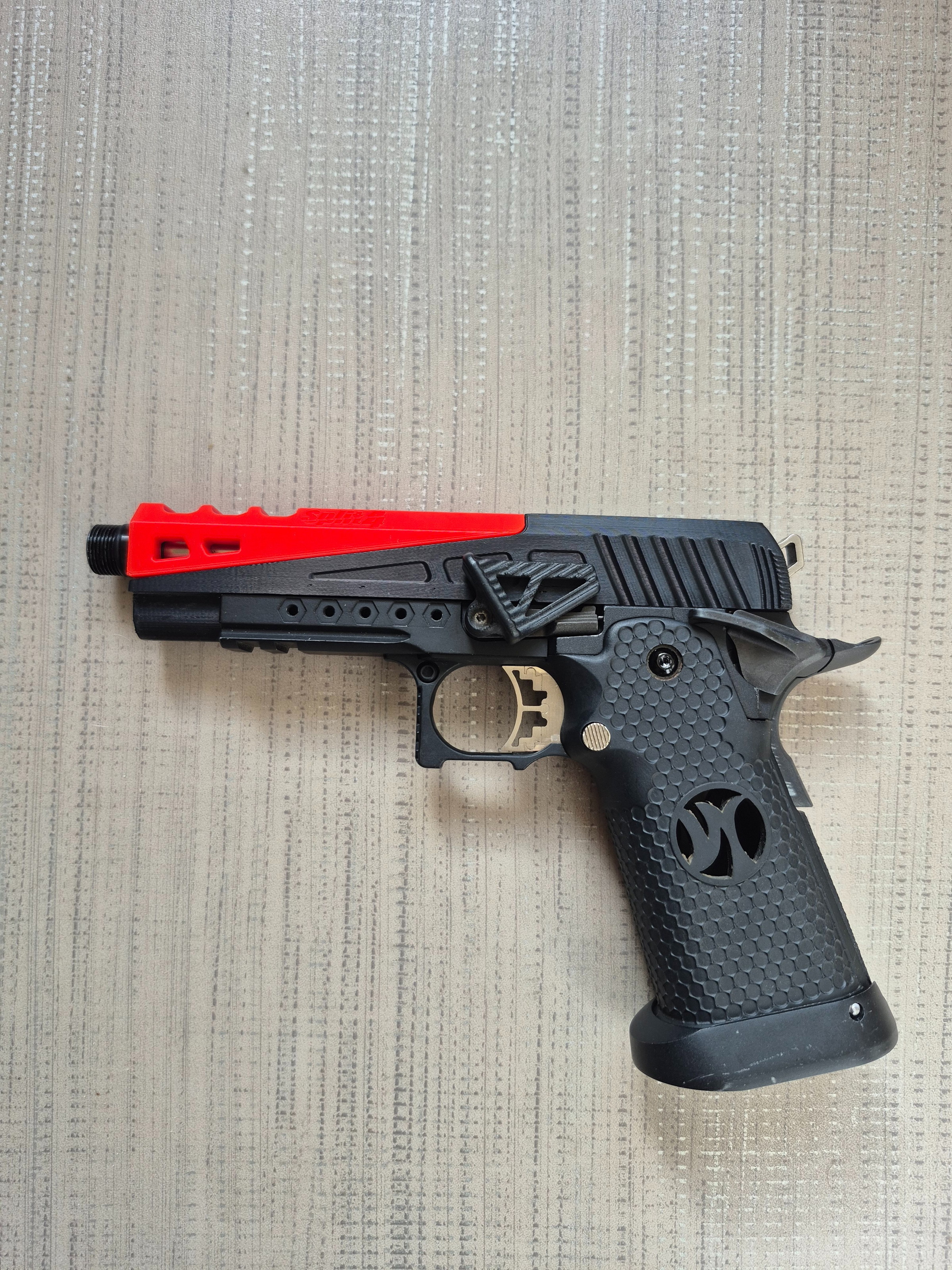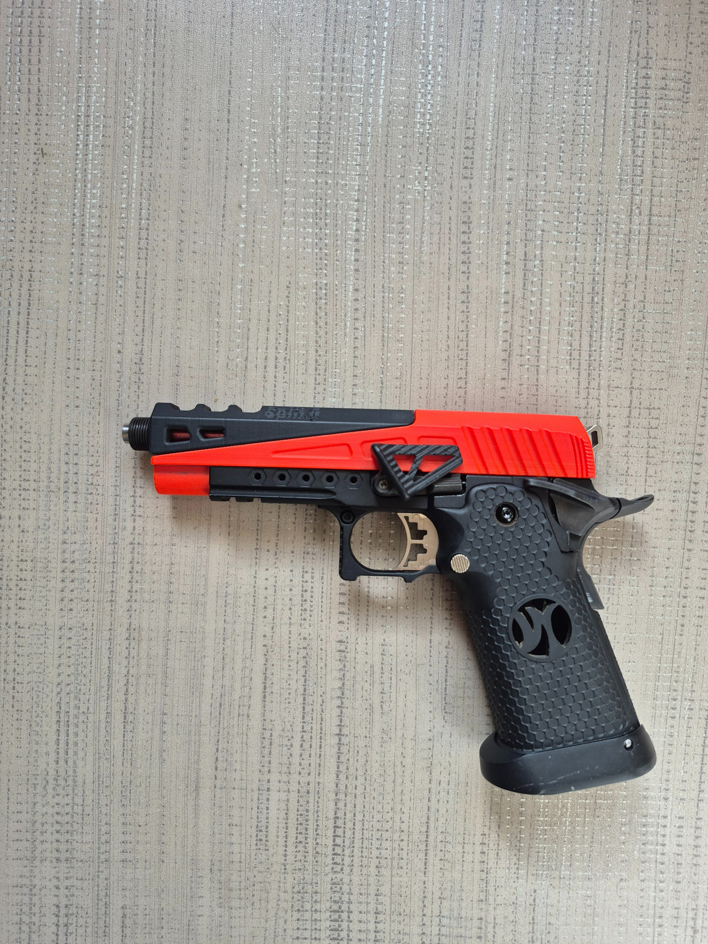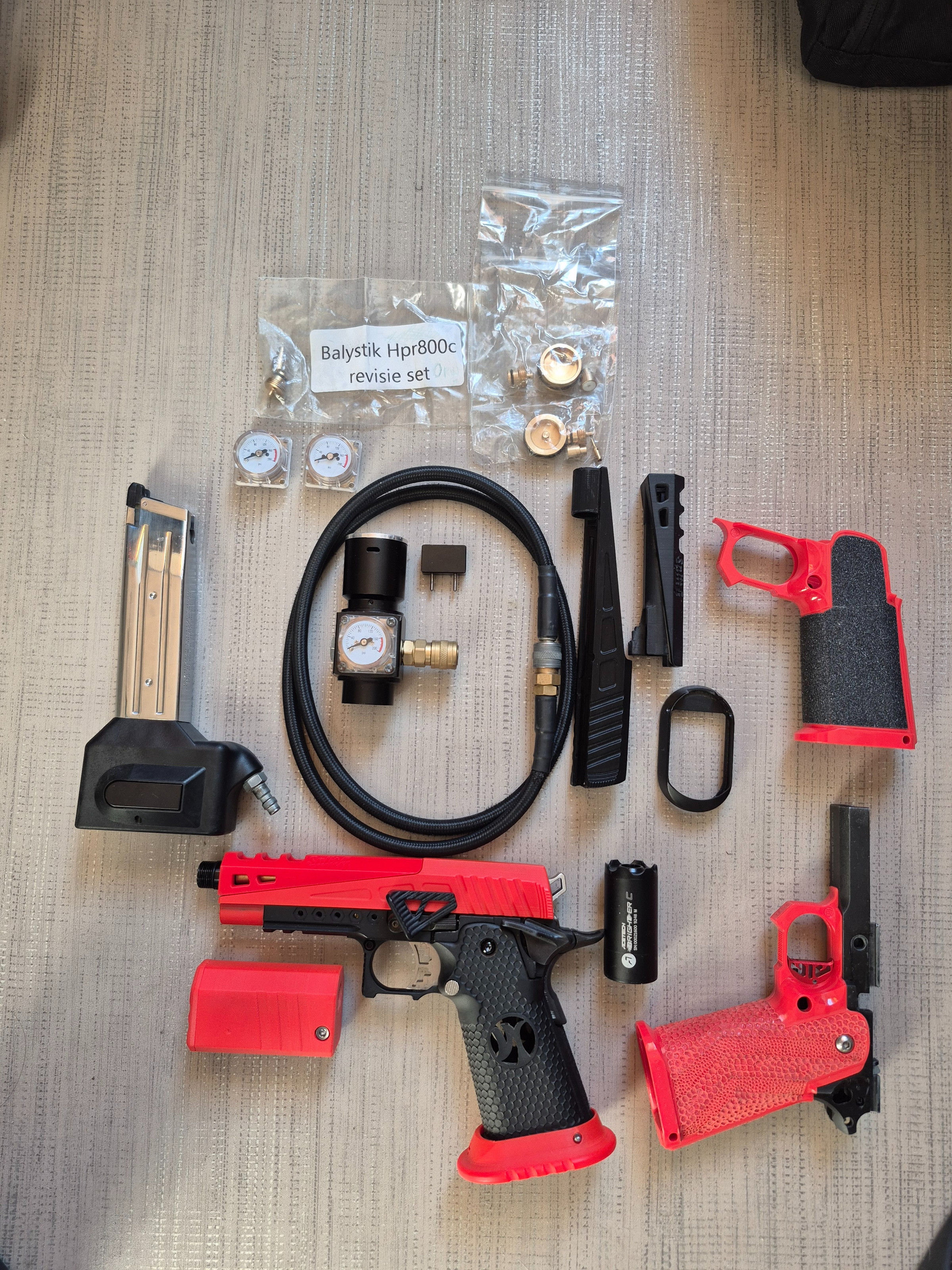 Hi capa split slide 1x rode 1x zwarte regulator balystik met 2x revitie set hpa darm m4 adaptor acetech tracer extra grip met frame +extra grip zo goed als nieuw pistol spelen is niet mijn ding