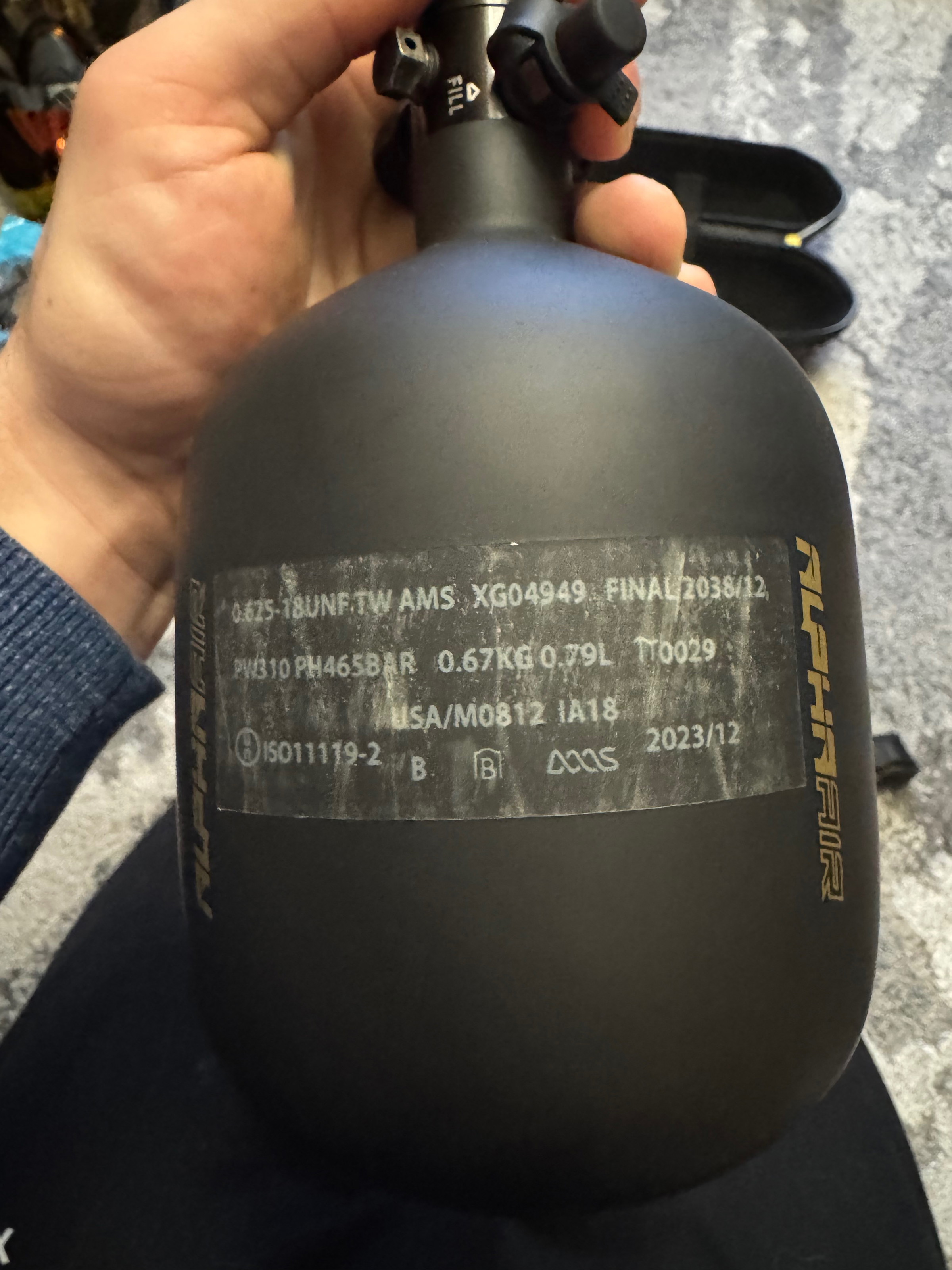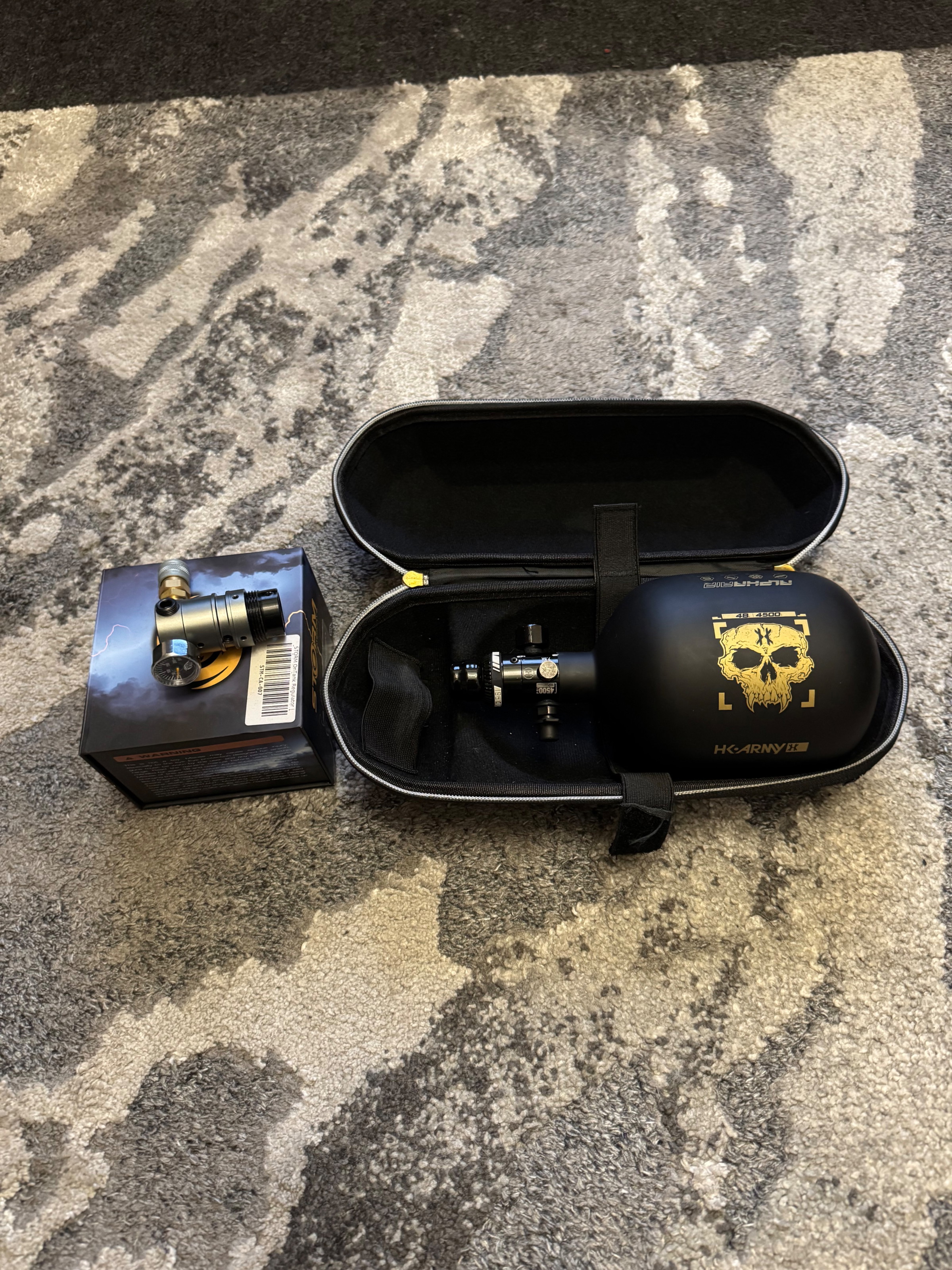 Hk army gas fles incl hk army transport tas.