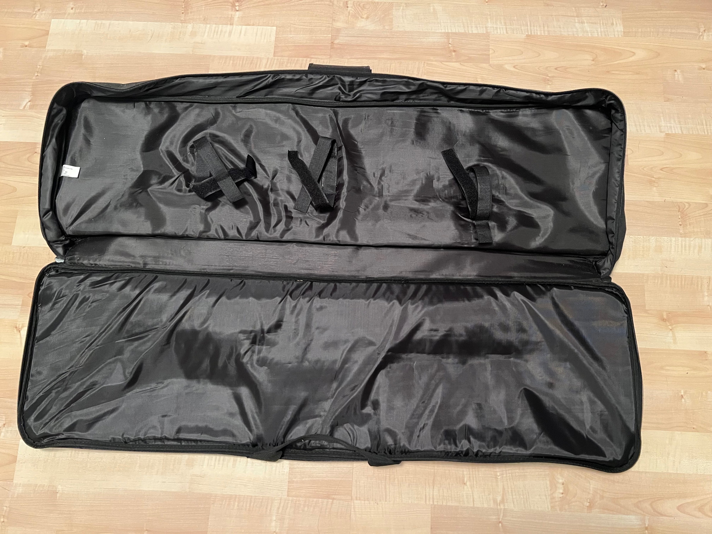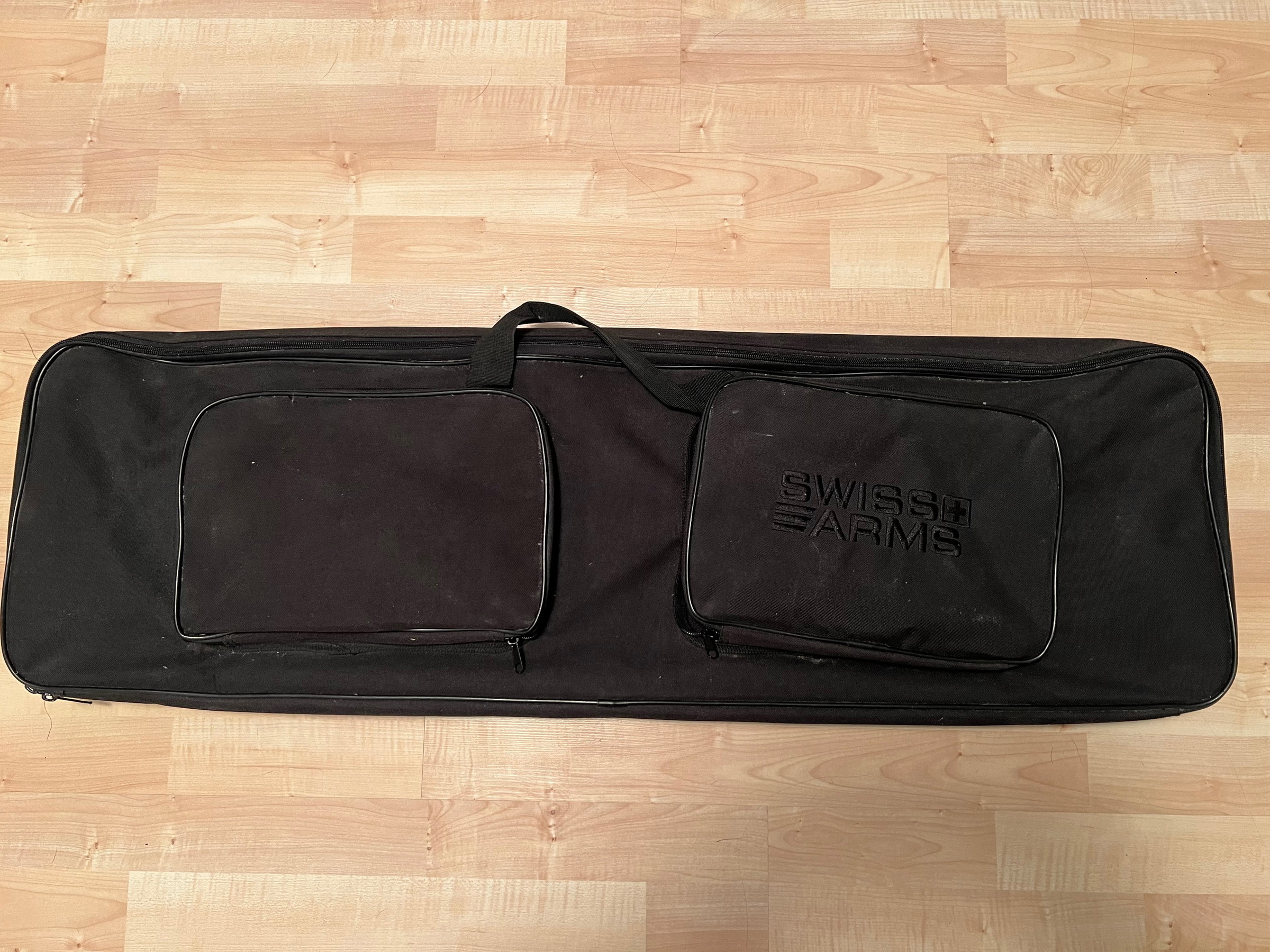 • Swiss Army Polyester-Tragetasche (simple, leichte Polsterung) mit 2 Außenfächern; Innen Gummilaschen zur Befestigung von Griffen/Teilen; leicht staubig. Tasche ursprünglich €29,90.