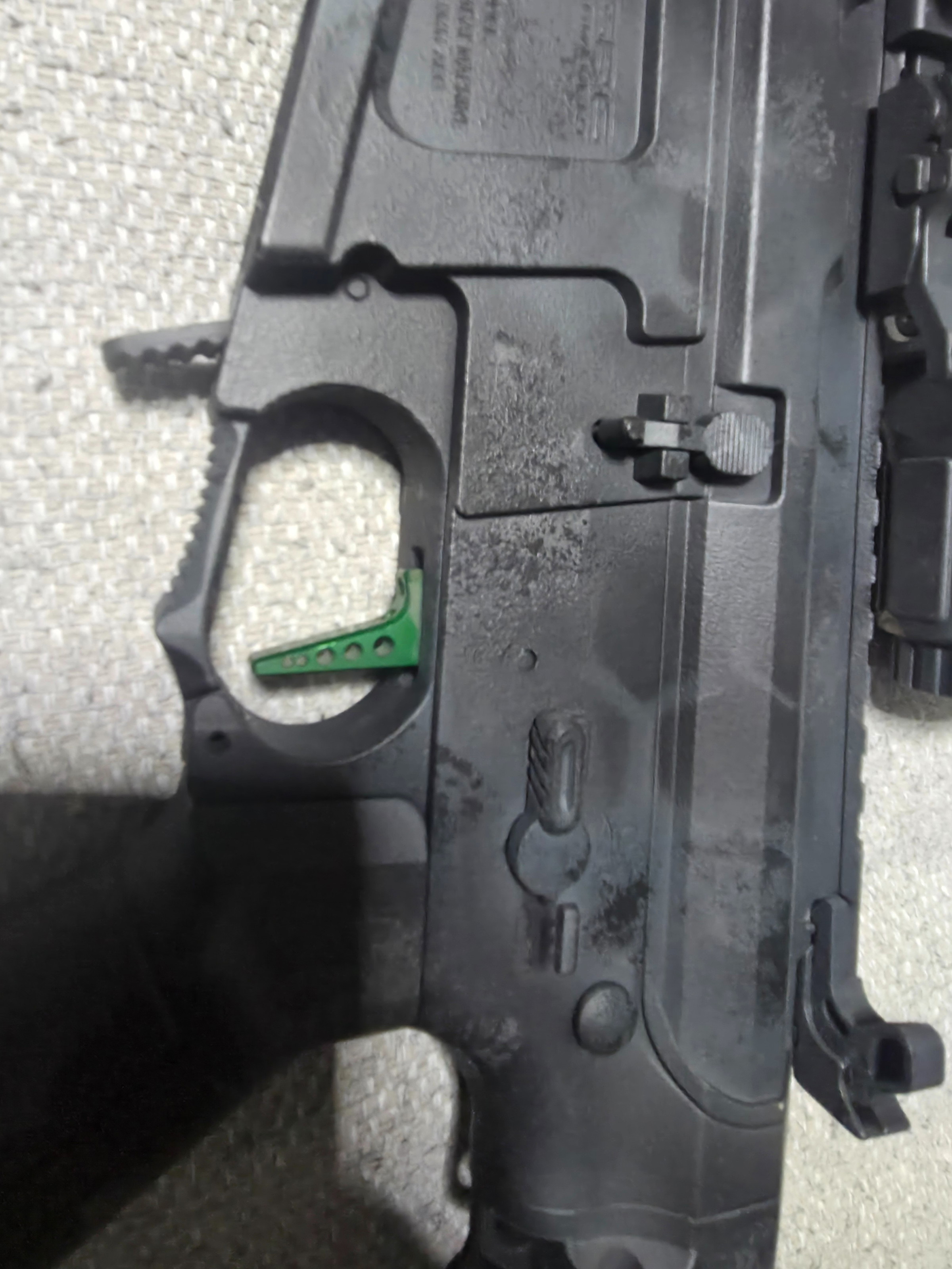 Arp 9 van g&g op hpa(polarstrar v2 engine) met tracer en scope, 2 drums (manueel) sport trigger. Duikfles om je carbon hpa fles te vullen en een carbonnen hpa fles. Plus batterij voor besturing hpa