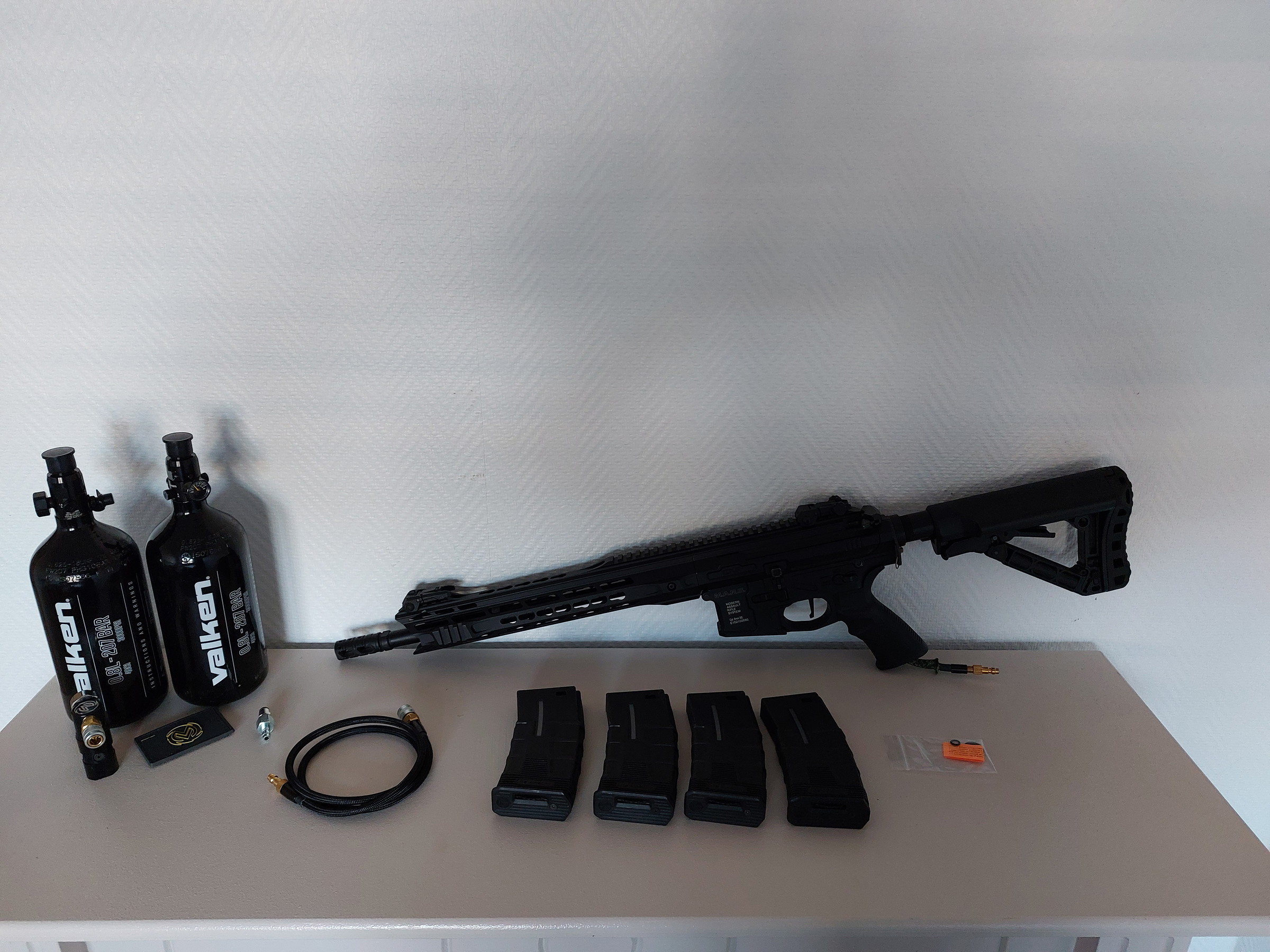 Te koop Ics mars 12inch met de polarstar kythera engine. Deze komt met 2 falken flessen een wolverine storm regulator, een wolverine hpa slang en 4 highcaps.