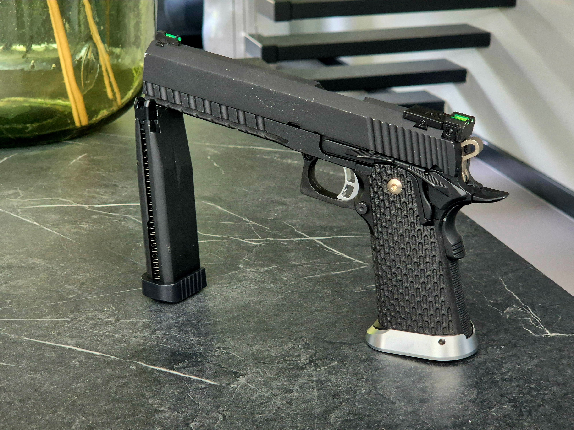 Zeer nette Hi-Capa welke gewoon netjes naar behoren werkt. Weinig gebruikt. De Hi-capa komt met een lekvrije GBB magazijn. Mag uitgebreid getest worden bij mij thuis. Verzenden is eventueel ook een optie.