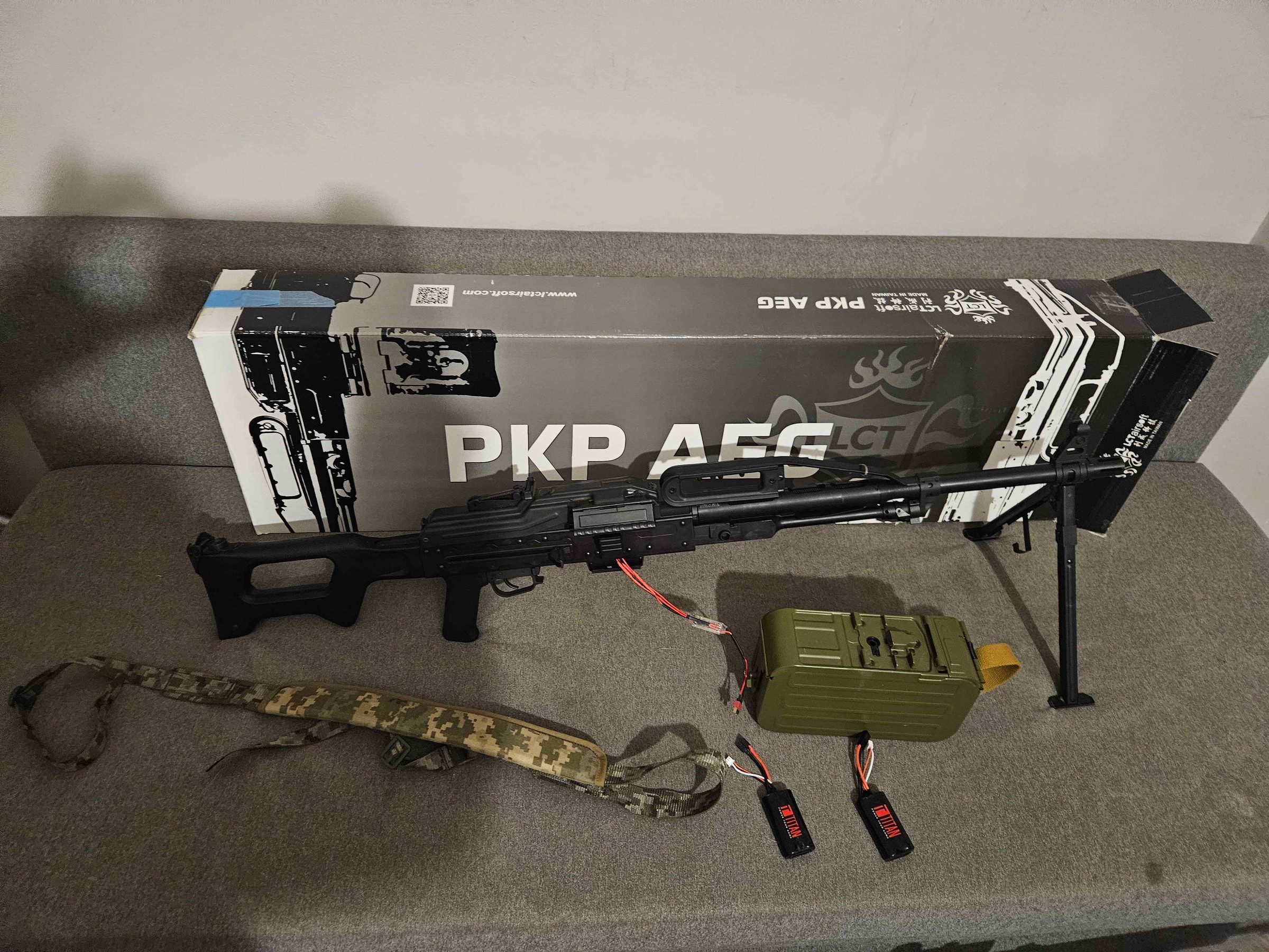 de replica komt met de doos waar die in kwam en 2 baterijen en een sling