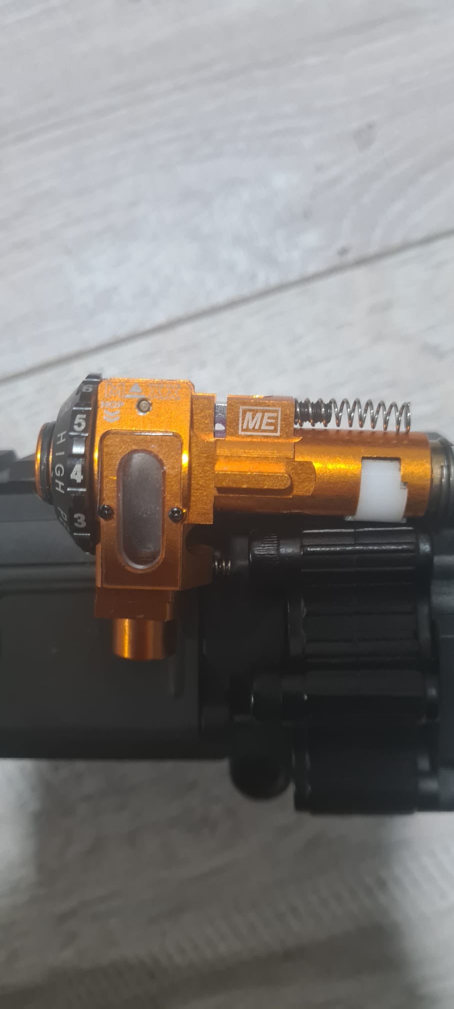 deze m4 heeft een reinforced snowwolf quick change gearbox met een asterv2 mosfet met dsg gears en een cnc maxx hopup unit en precision barrel