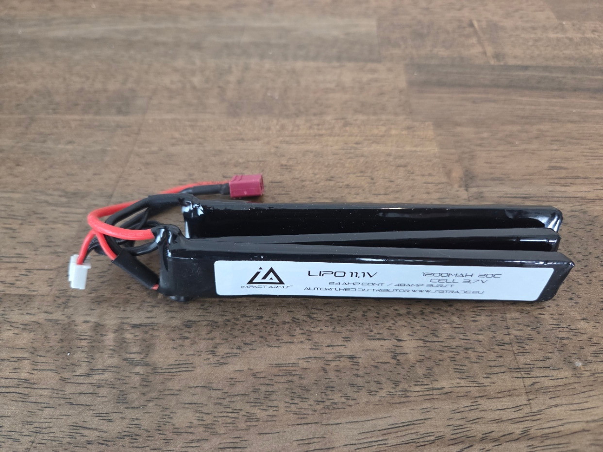 Ideal for airsoft AEGs that require a split‑cell / crane‑stock compatible LiPo.