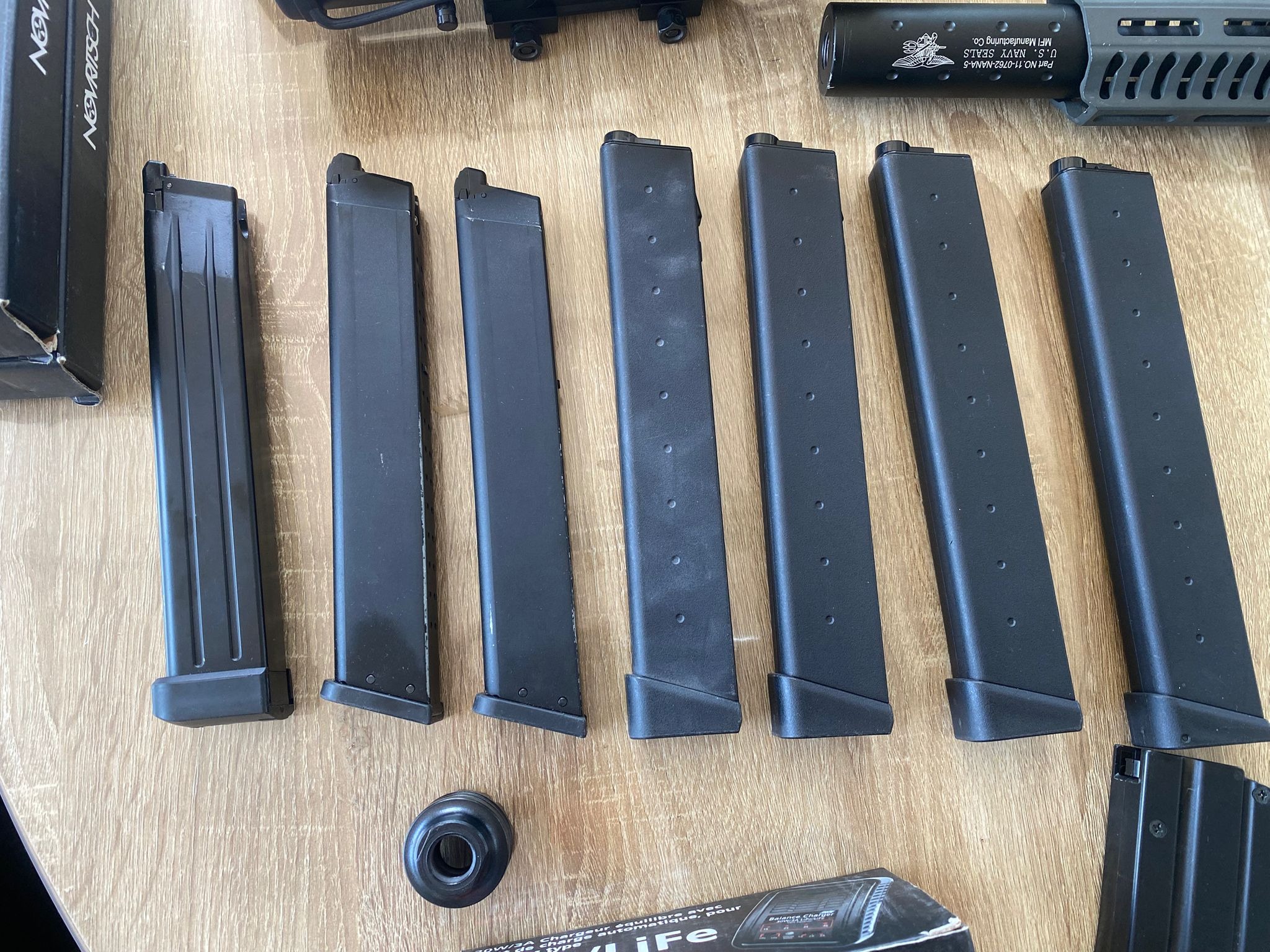 Lot airsoft materiaal (ARP9 Battle grey, Tokyo Marui Hi Capa 5.1, Novritsch SSP18, WAS Plate Carrier)