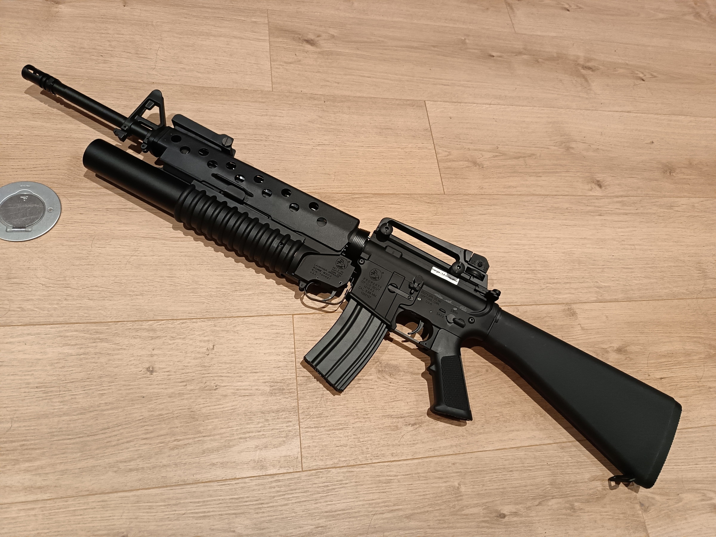 Je vous propose a la vente ou à l'échange (gbbr Mws uniquement), ce magnifique M16A3 M203 de marque E&C avec les marquages.