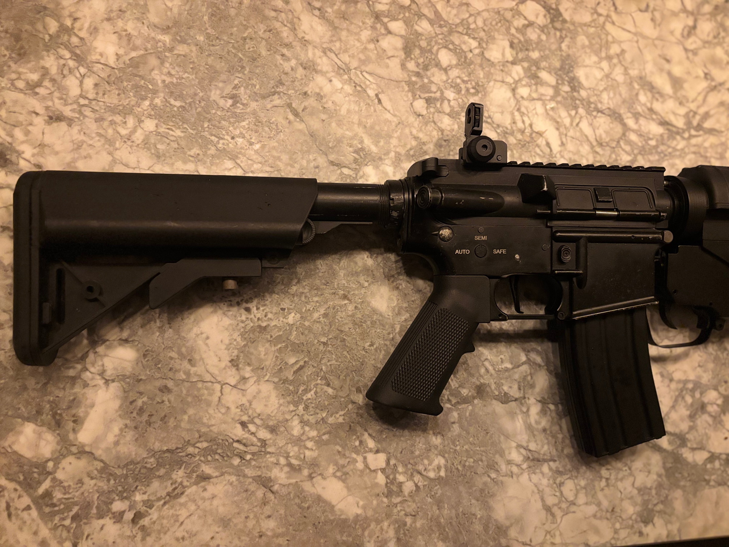 Replica schiet en functioneerd zoals moet. Zowel semi als fullauto werken zoals hoort.