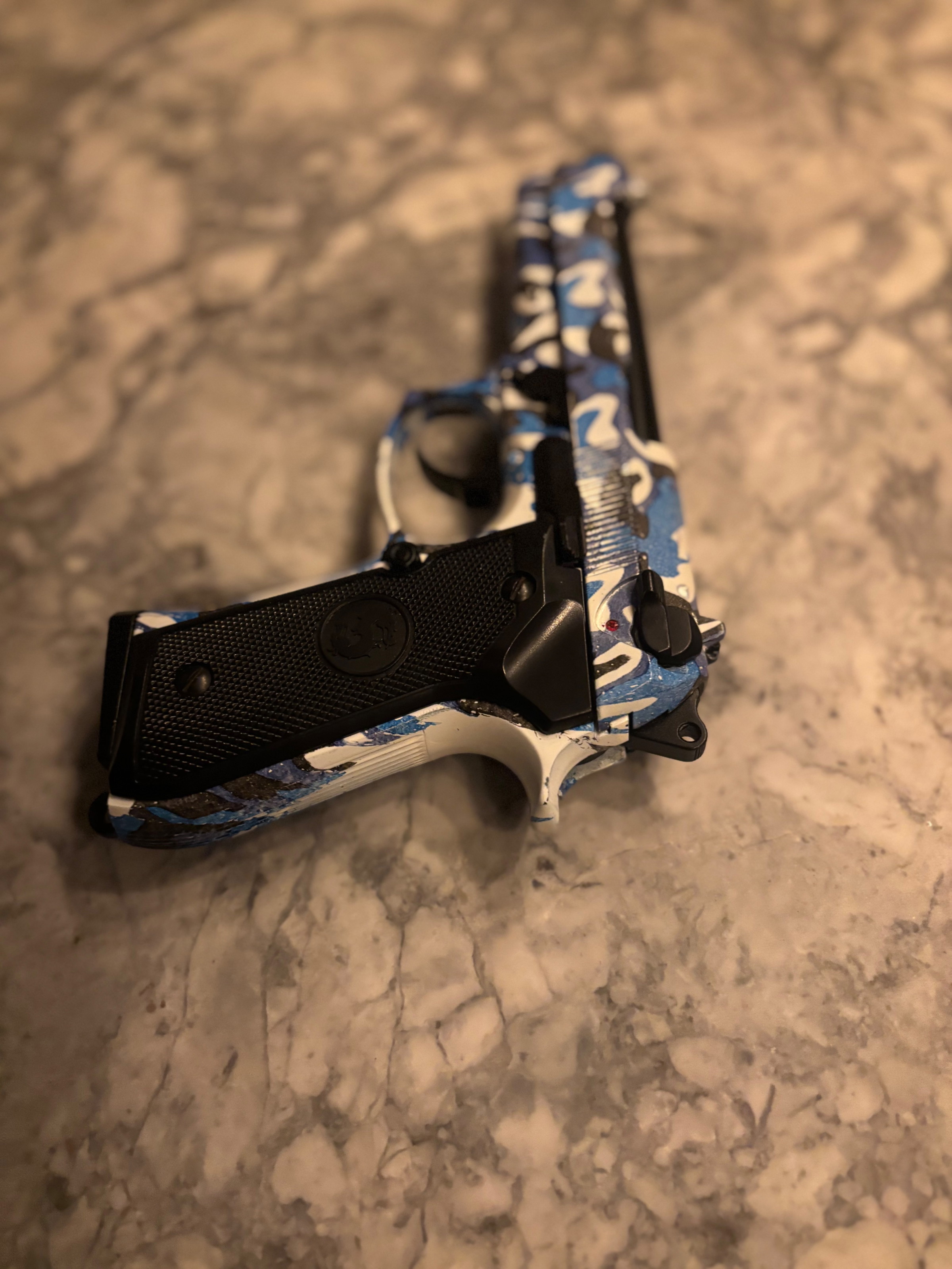 Kleur is niet gespoten. Zit er keurig op. Lijkt haast wel een coating of hydrodip.