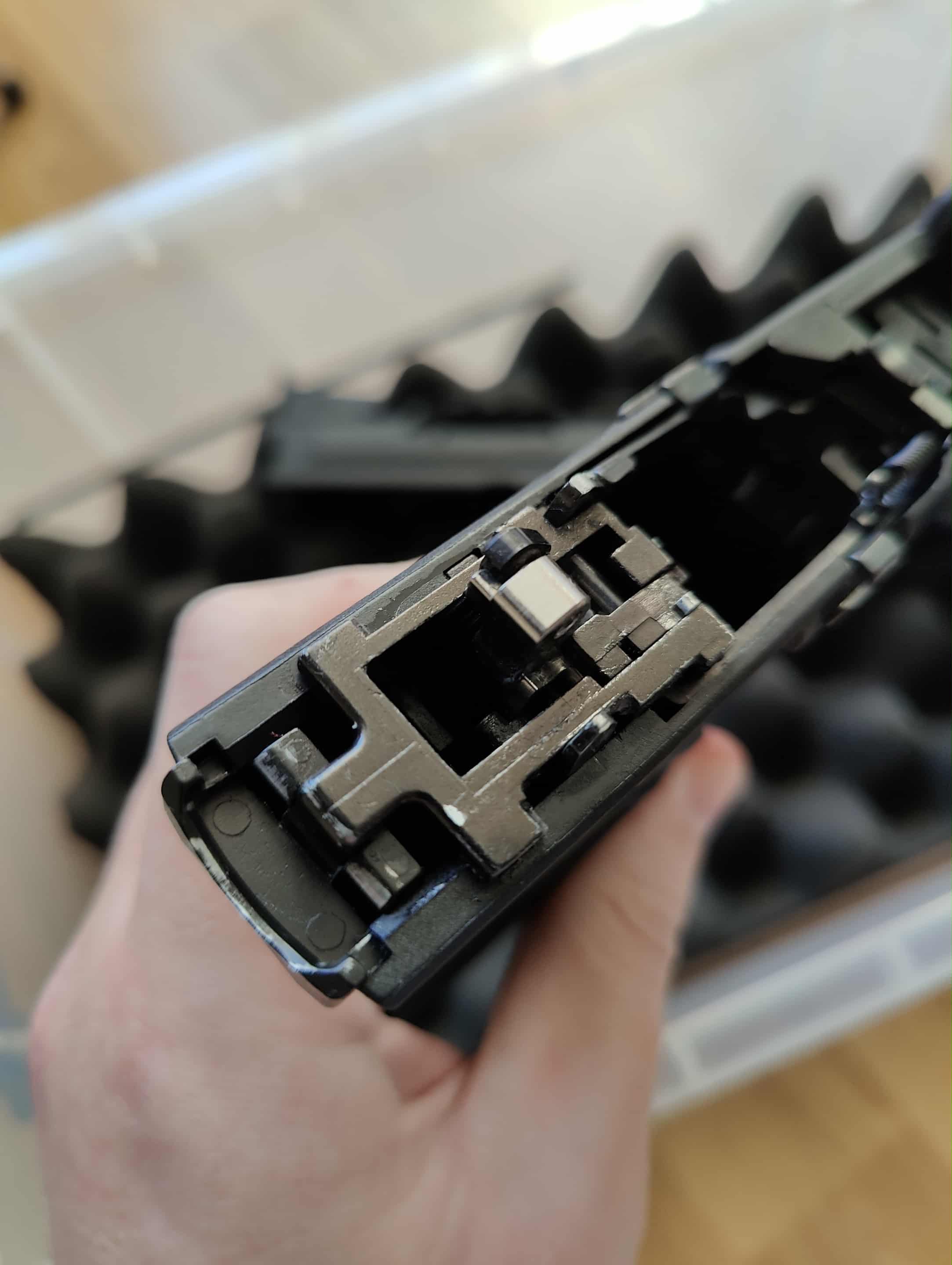 De sporen die u ziet is van een keer , de upper modificeren lukte niet dus ik ging naar een locale winkel voor hulp , die hebben het in elkaar gestoken en dan volgepropt vol vet , ik denkend dat dit goed was heb hem gebruikt , vet zag direct zwart door de overdreven frictie , ik heb direct gestopt en alles proper gemaakt en deftig gesmeerd met ptfe , maar dit geeft de indruk dat hij veel gebruikt is geweest wat dus niet waar is