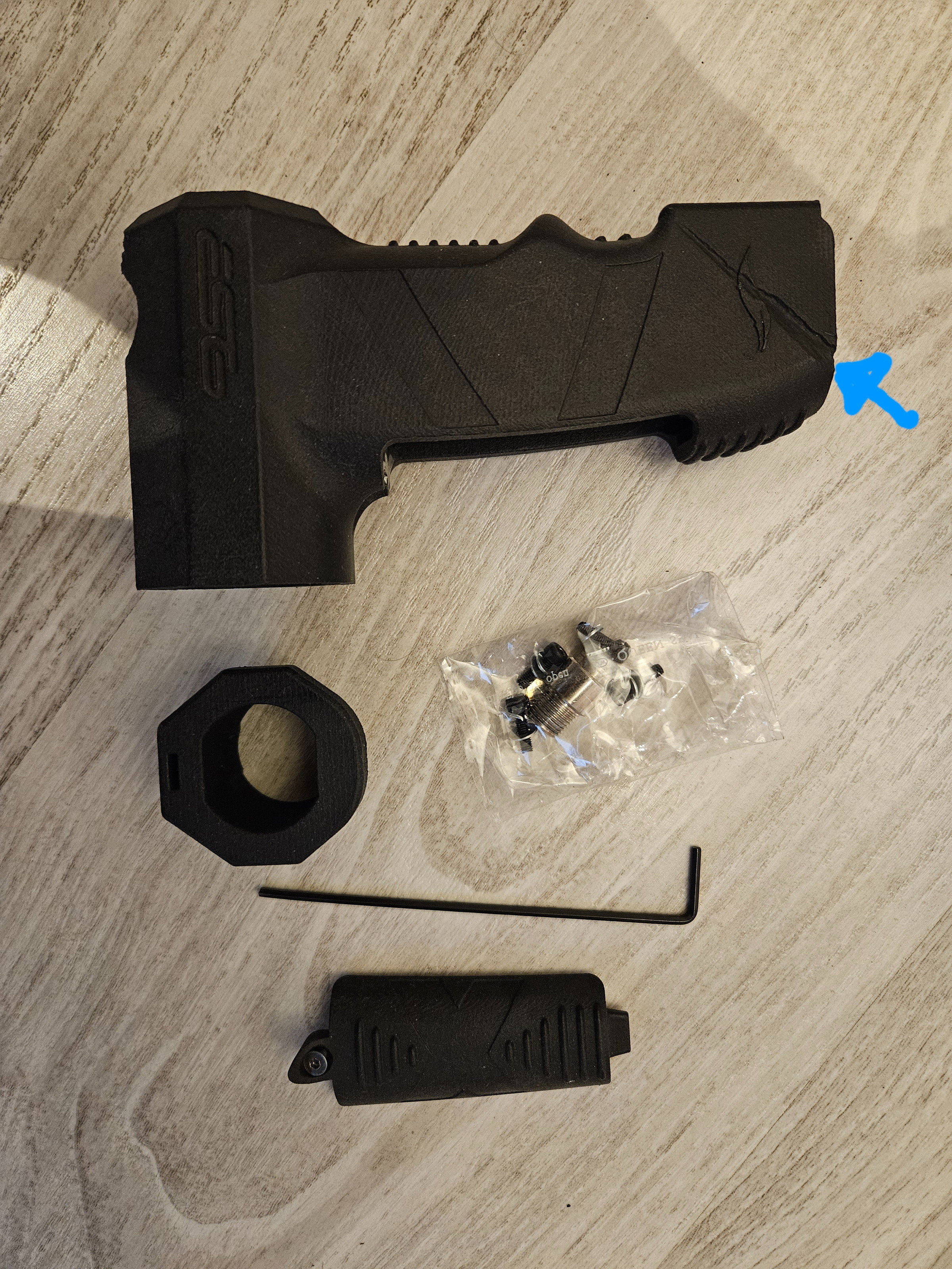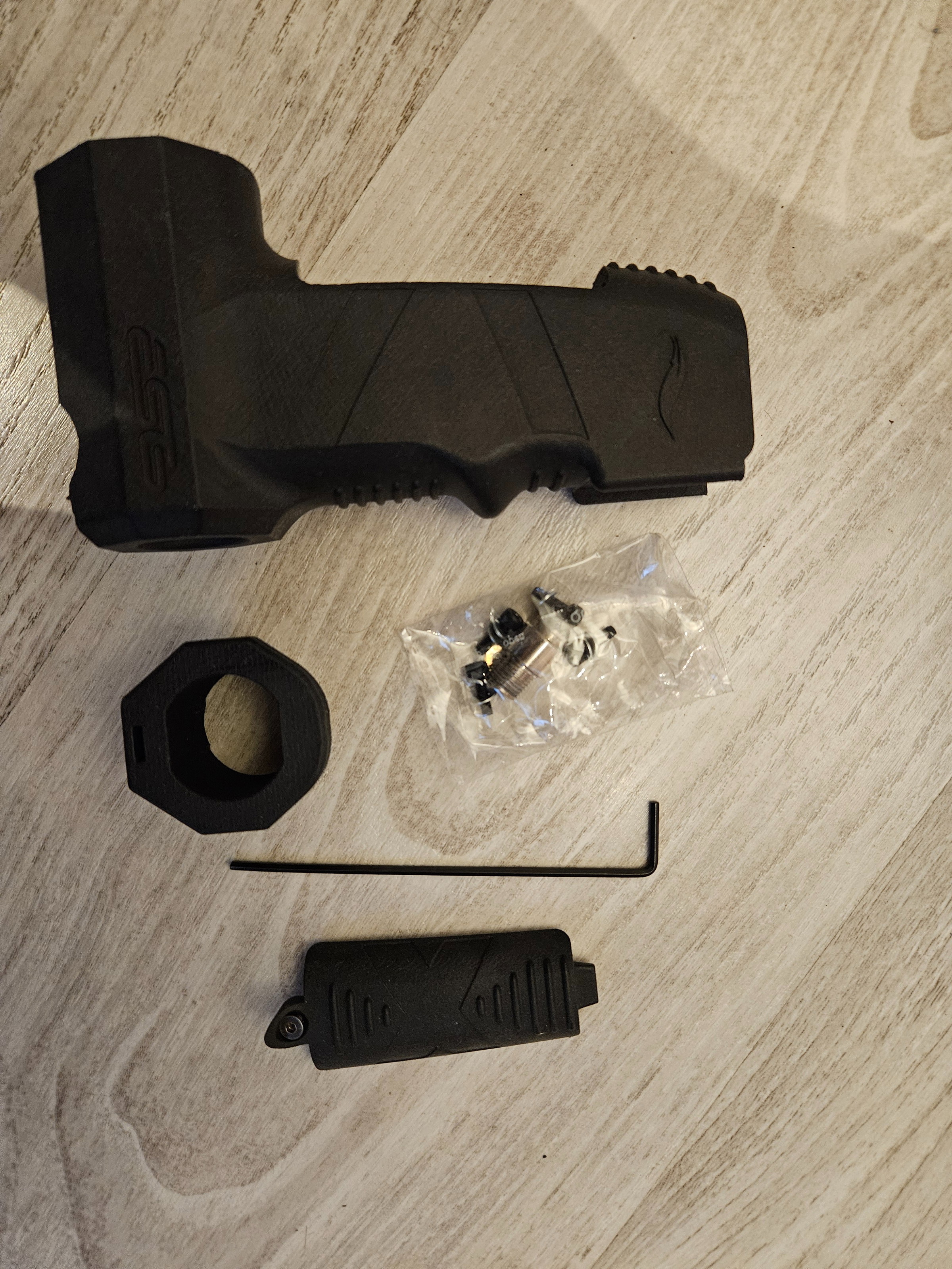 Ik heb de grip gewisseld voor een ESG-R, dus deze mag weg. De grip is ontworpen voor de wolverine storm (niet cat 5).