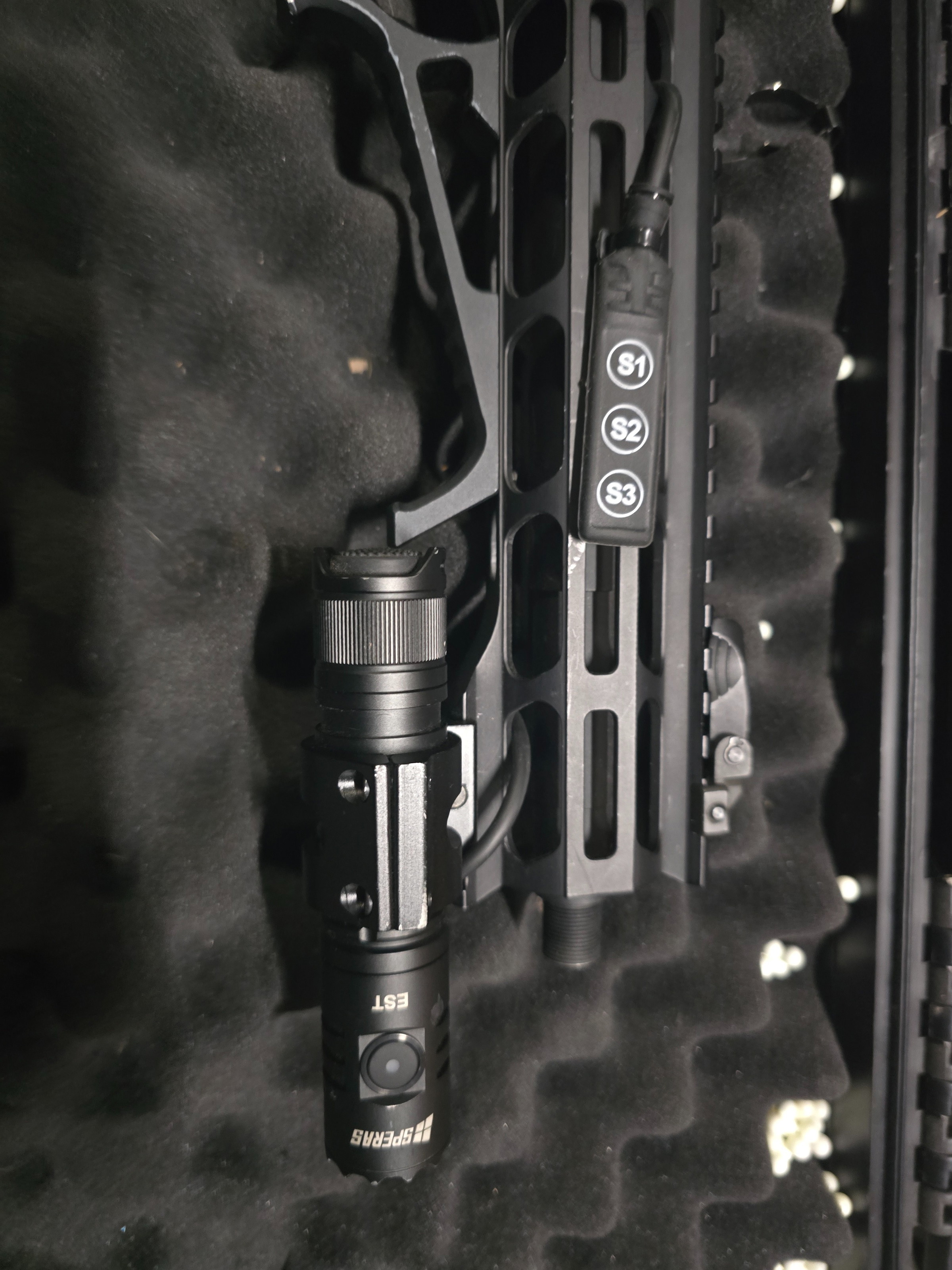 Perfect werkende 10inch mtw met hpa stock , flashlight met knoppen bediening en een handvat aan de onderrail.