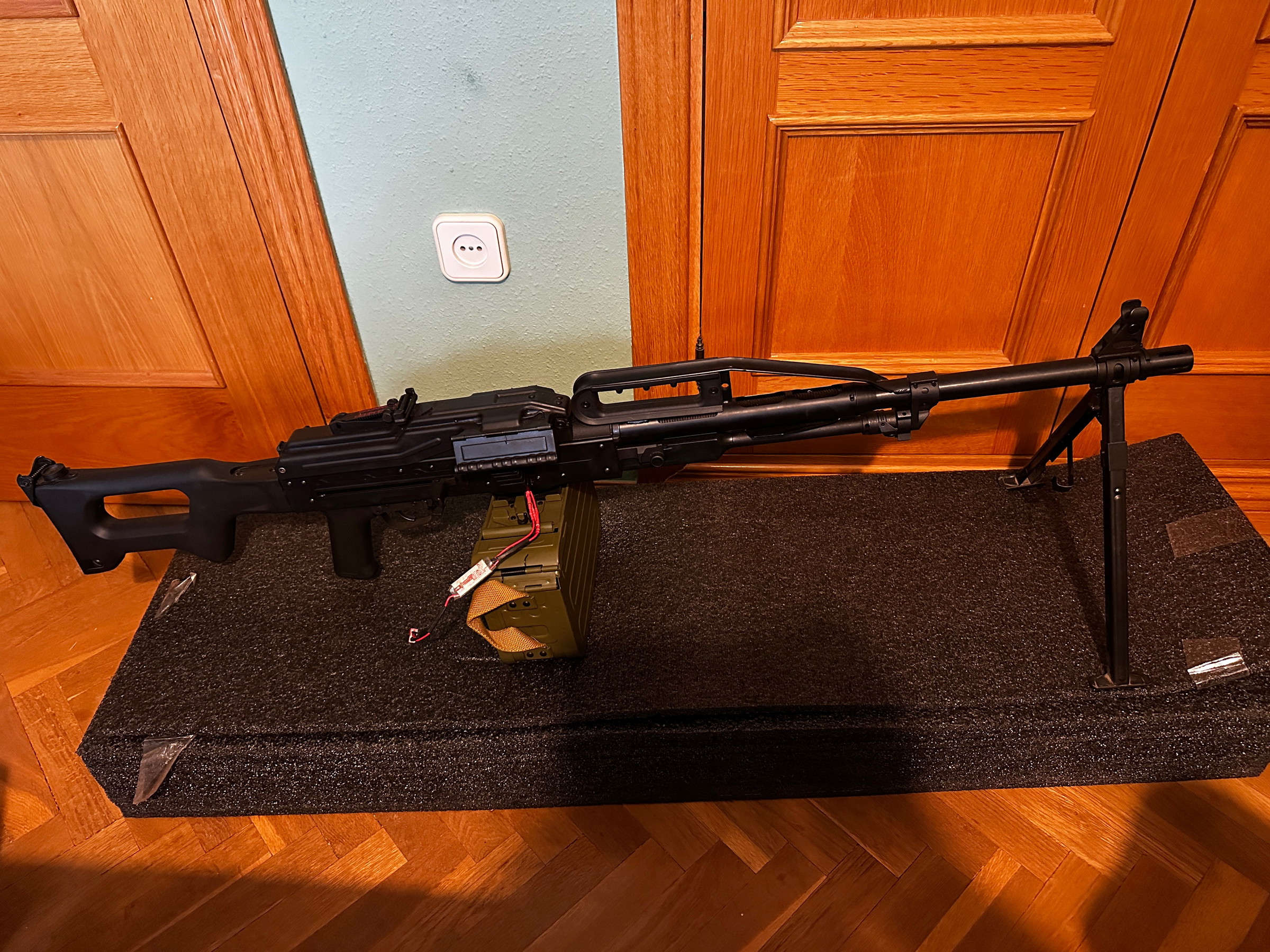 La PKP está en perfecto estado. Solo la usé un par de veces, la limpié después de usarla y la guardé. Incluye todos los accesorios originales, la batería de la pistola y la del cargador. La compré en abril de 2025 en una tienda española; la importaron directamente de LCT. Esta pistola es una pasada y muy divertida de usar. La disfruté muchísimo. Soy de Madrid, así que si también eres de Madrid, puedo enseñártela en persona.