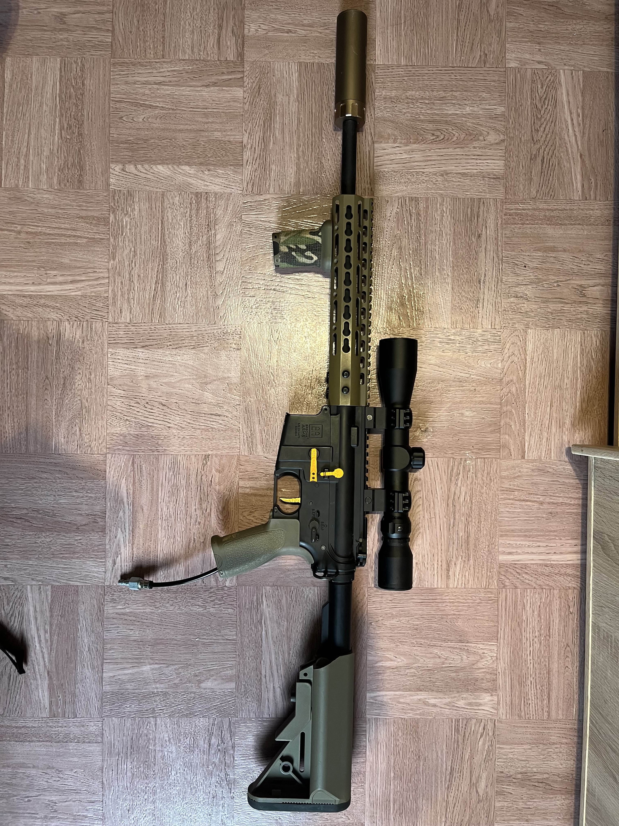 Deze komt met de scope ,de tracer unit, een batterij en met 7 magazijnen!