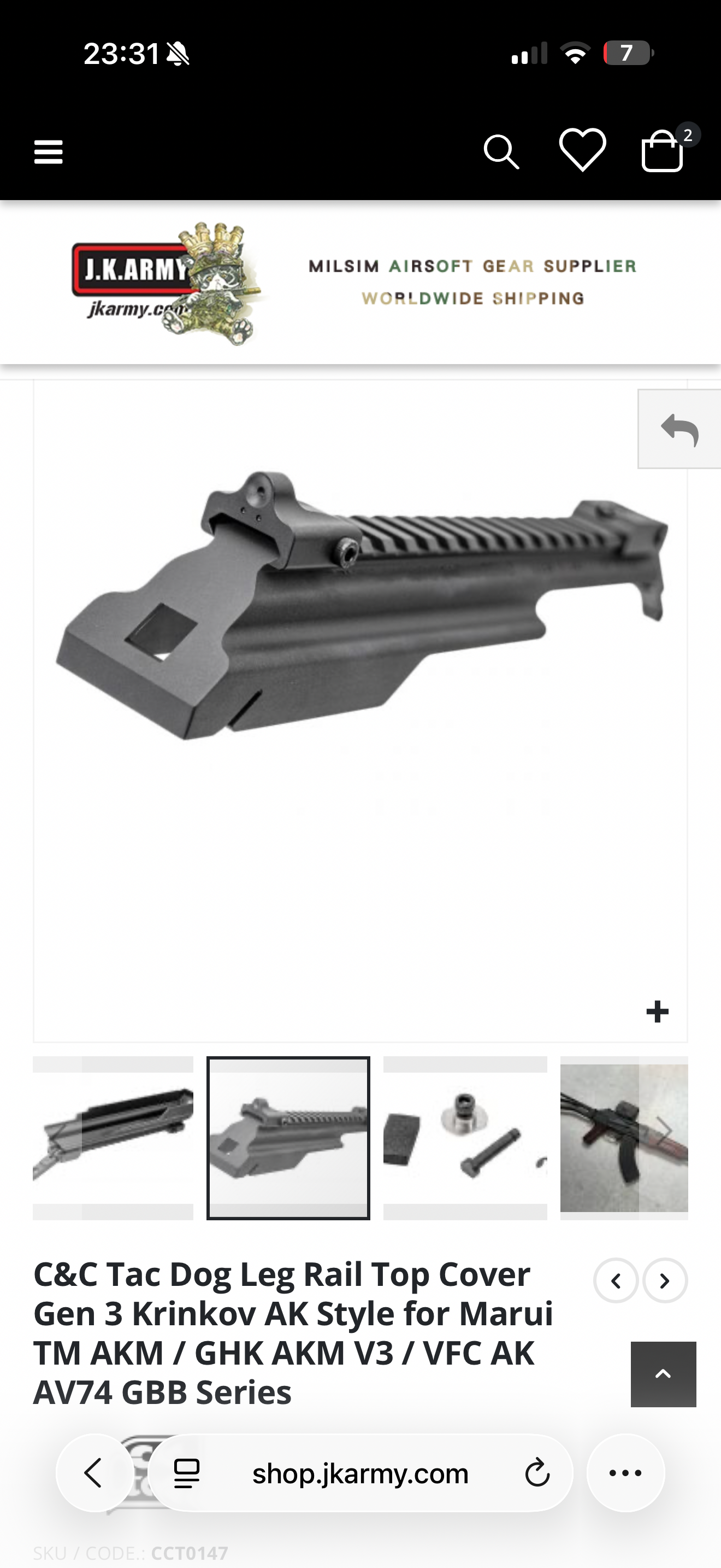 C&C Tac Dog Leg Rail Top Cover Gen 3 Krinkov AK Style for Marui TM AKM / GHK AKM V3 / VFC AK AV74 GBB Series