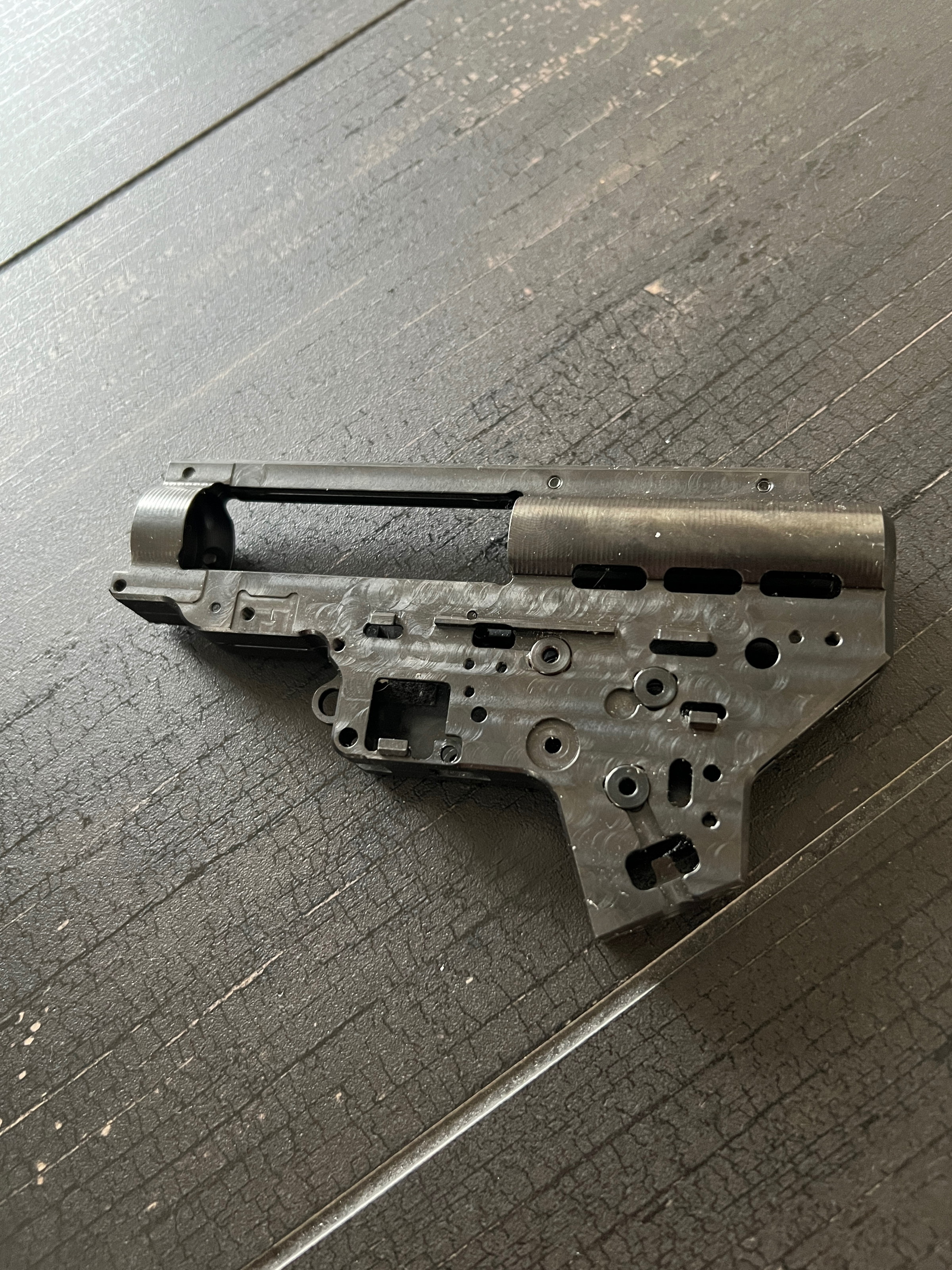 I am selling the gearbox used for 500-1000 shots. It did not fit my lower receiver well so I decided to sell it. It has few scratches near pistol grip screws holes bit other than that everything is perfect. It has all the screws and spring guide. I also have more parts so if you need more than only gearbox let me know.