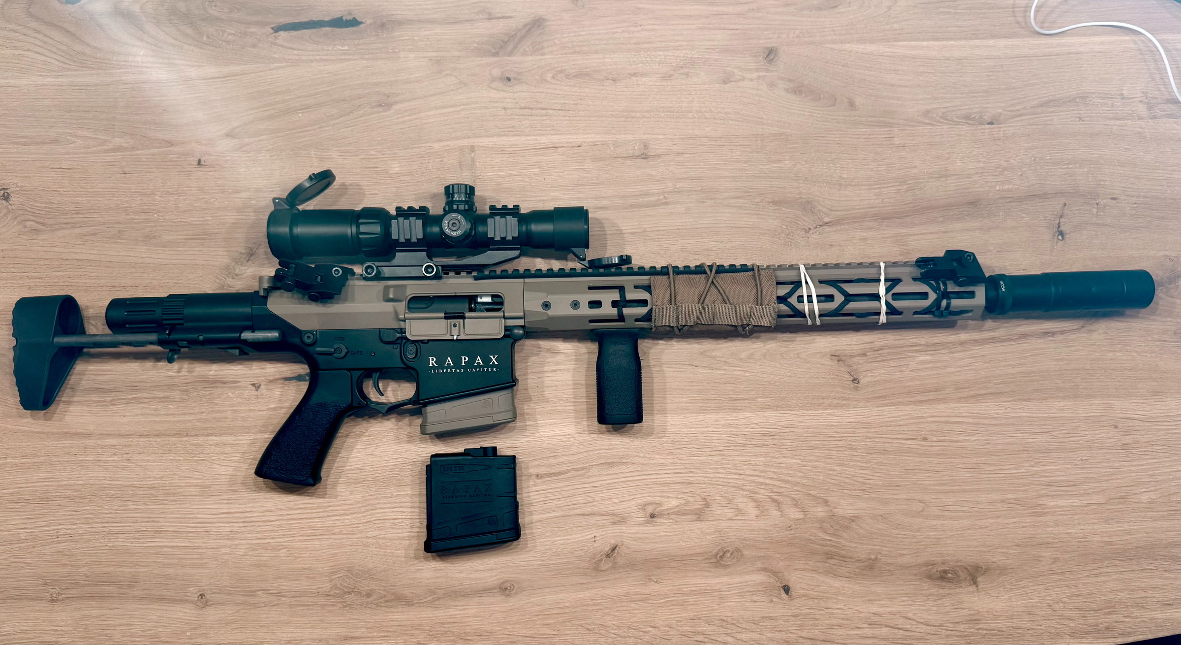 Deze prachtige Secutor Rapax XXI M2 heb ik enkele jaren geleden gekocht en vervolgens veel plezier mee gehad. De replica zie je niet veel en heeft veel bekijks, niet je standaard DMR. Nadat ik de hopup en barrel had geüpgrade, was deze DMR niet te stoppen. Erbij geleverd wordt een 3d geprint onderdeel om de loop te stabiliseren, helaas nooit aan toe gekomen om deze te installeren.