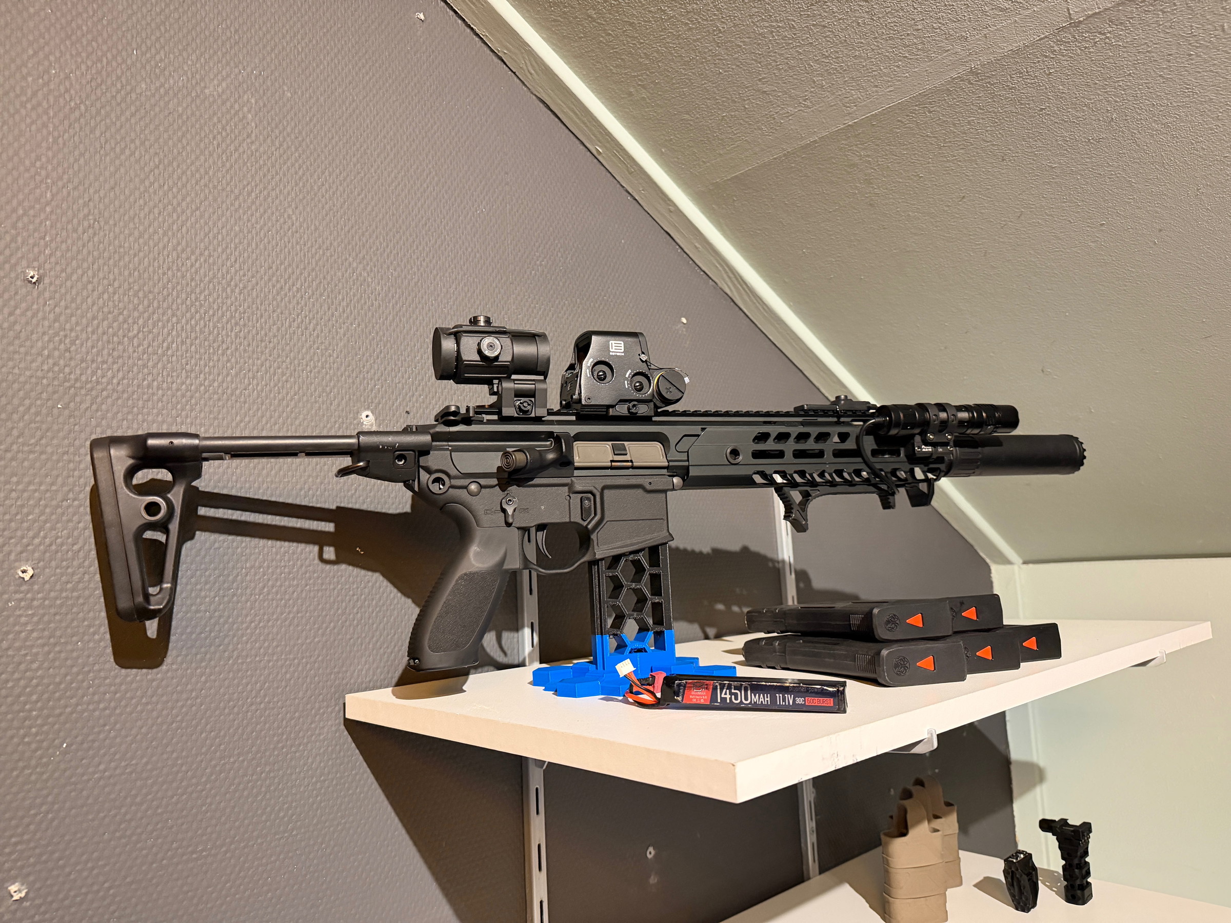 Zonder forgrip, demper, reddot en magnifier en flashlight.