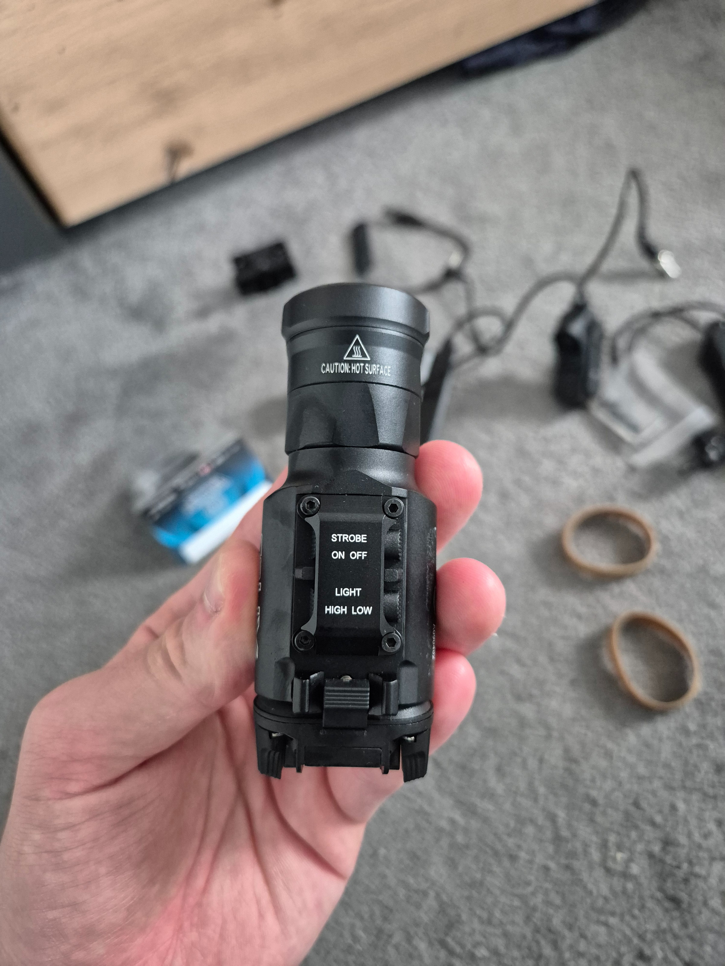 Surefire XH35 Flashlight ( hoogwaardige reproductie, gemaakt door spec pricision). Nieuw, net uit de verpakking, nooit gebruikt. Heeft strobe functie en heeft 2 verschillende standen voor sterkte van het licht. Voorzien van alle correcte markeringen. Zeer degelijk en fel lampje. Werkt op 2 x CR123A batterijen.