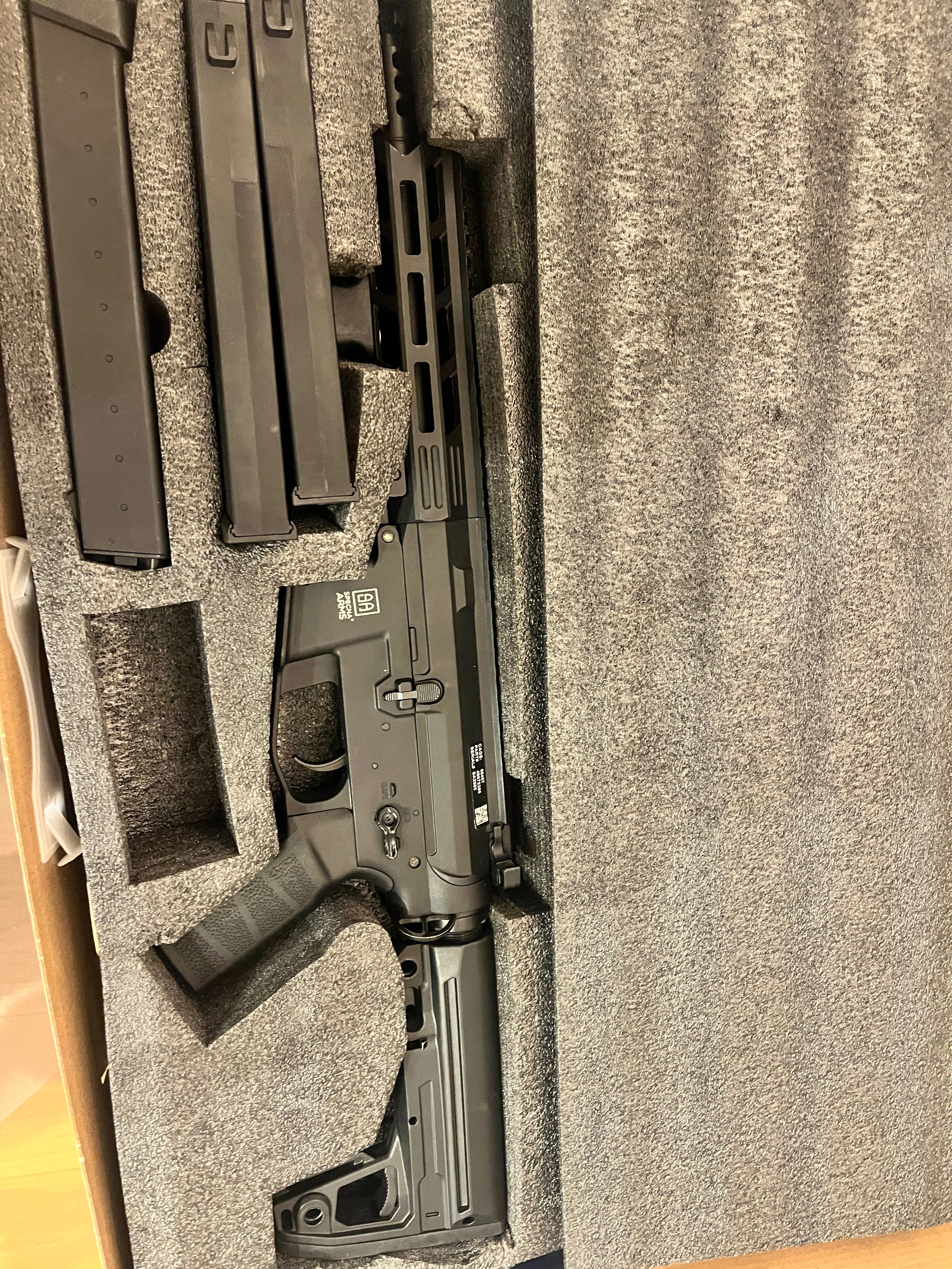 Nette SMG van het merk Specna Arms. De replica is voorzien van een andere stock (rubber stock laat klein stukje los).