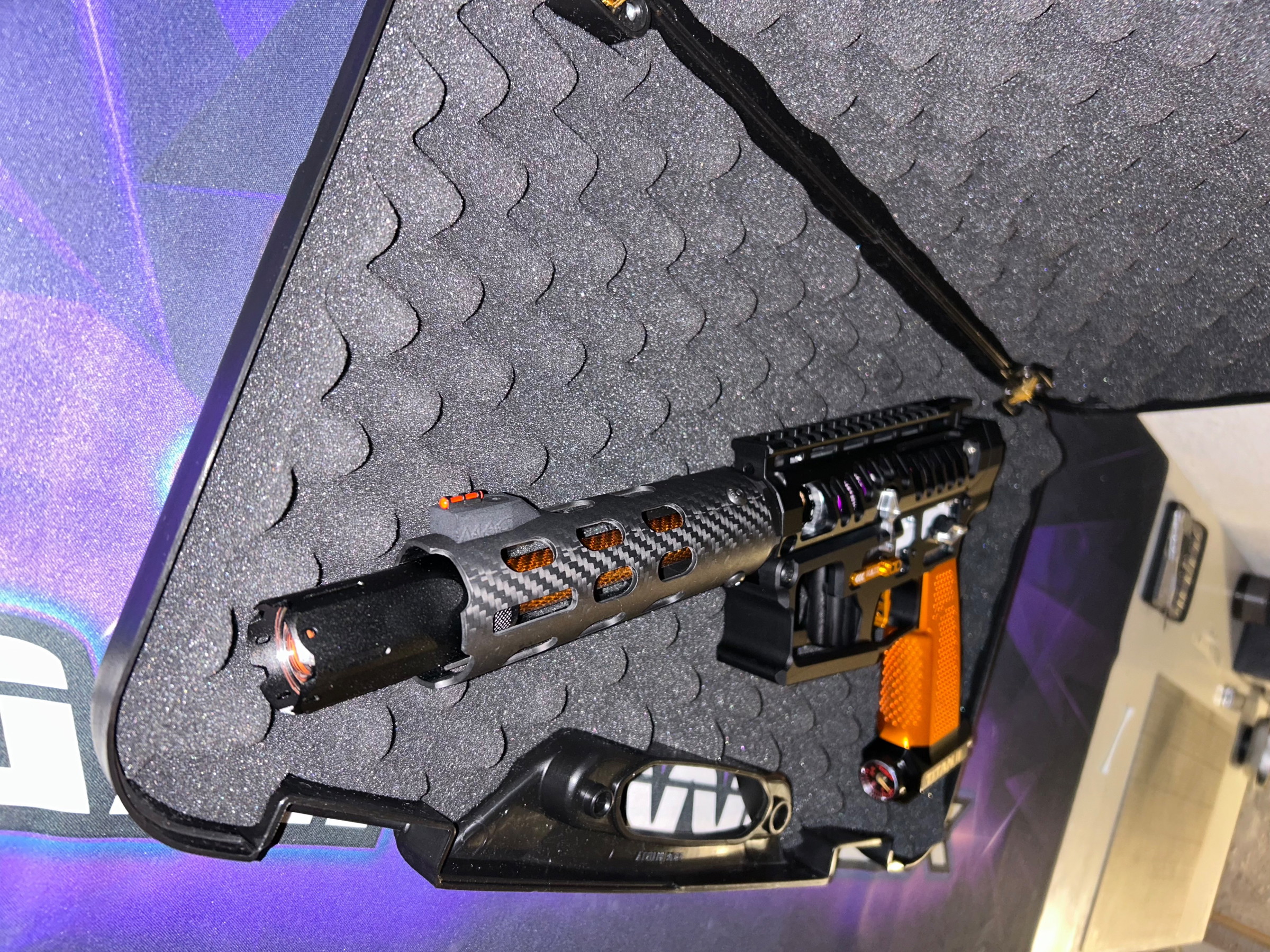 Verkaufe meine nagelneue Airsoft diese wurde für Speed Games aufgebaut doch leider hat die Halle, in der ich diese Waffe benutzen wollte geschlossen, bevor die Waffe überhaupt zum Einsatz kam. Sie ist neu und unbenutzt sie ist für Deutschland auf 0,5 J gedrosselt und kann somit auch Full Automatik schießen. Fürs Ausland muss man ein anderes Ventil einbauen und hat somit auch mehr power.